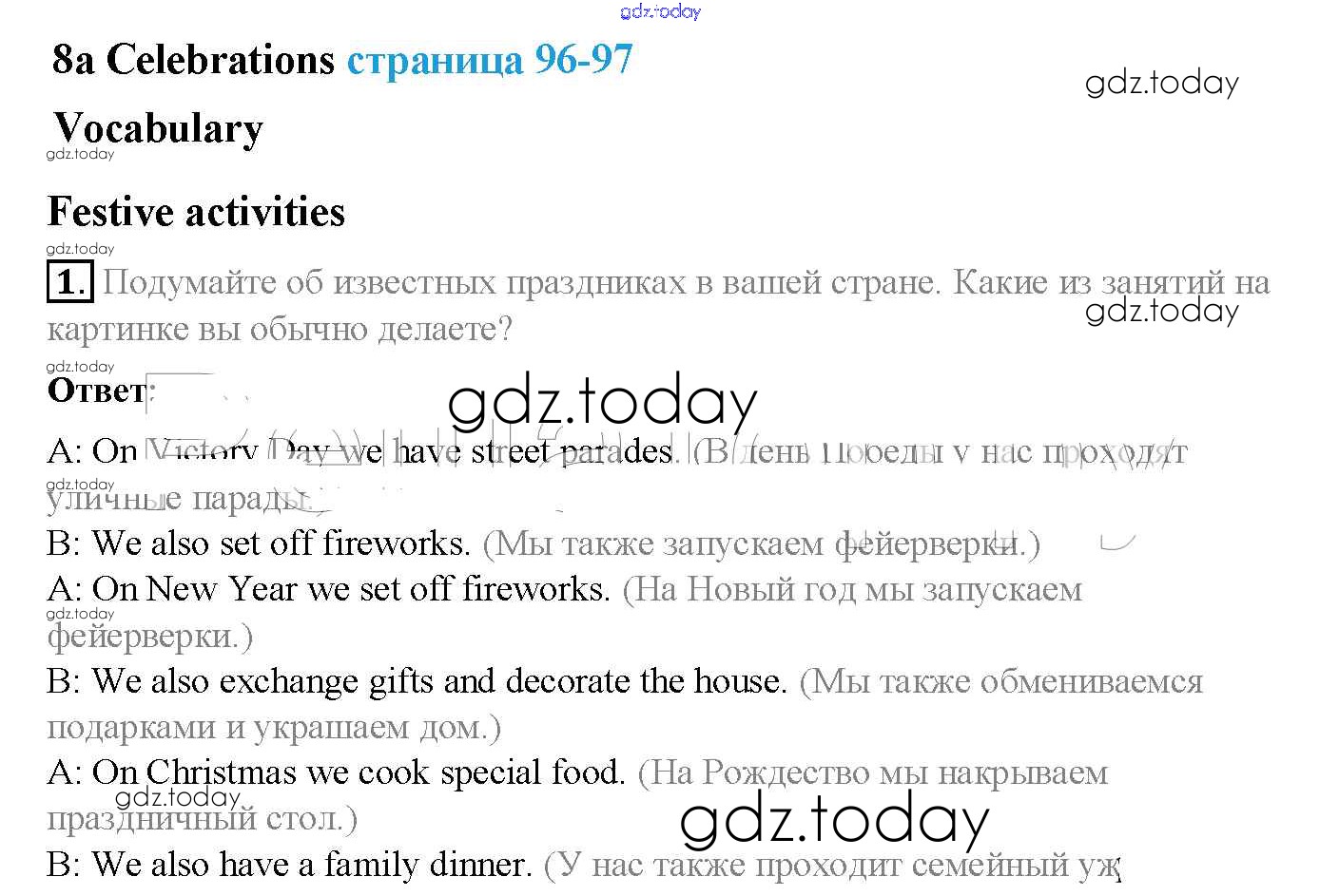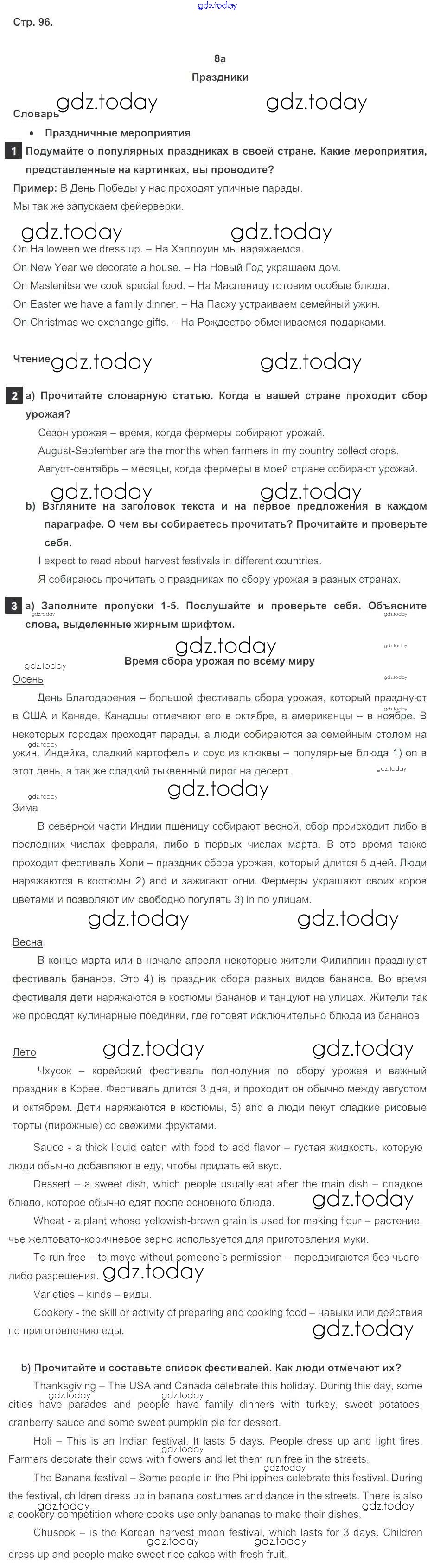 Ответы к Решение к Module 8. Special days стр. 96 Учебнику по Английскому языку для 5 класса Ваулина, Дули Просвещение Spotlight 2015