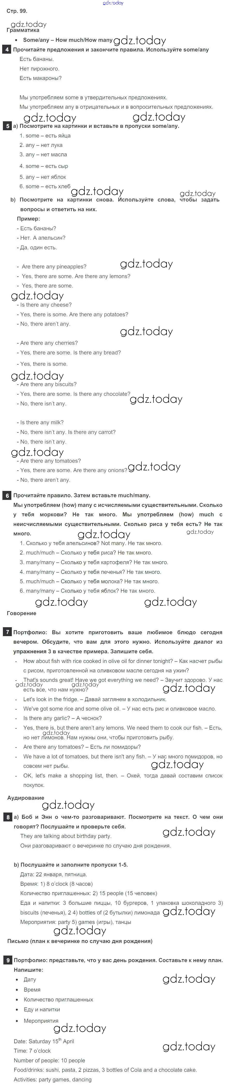 Ответы к Решение к Module 8. Special days стр. 99 Учебнику по Английскому языку для 5 класса Ваулина, Дули Просвещение Spotlight 2015