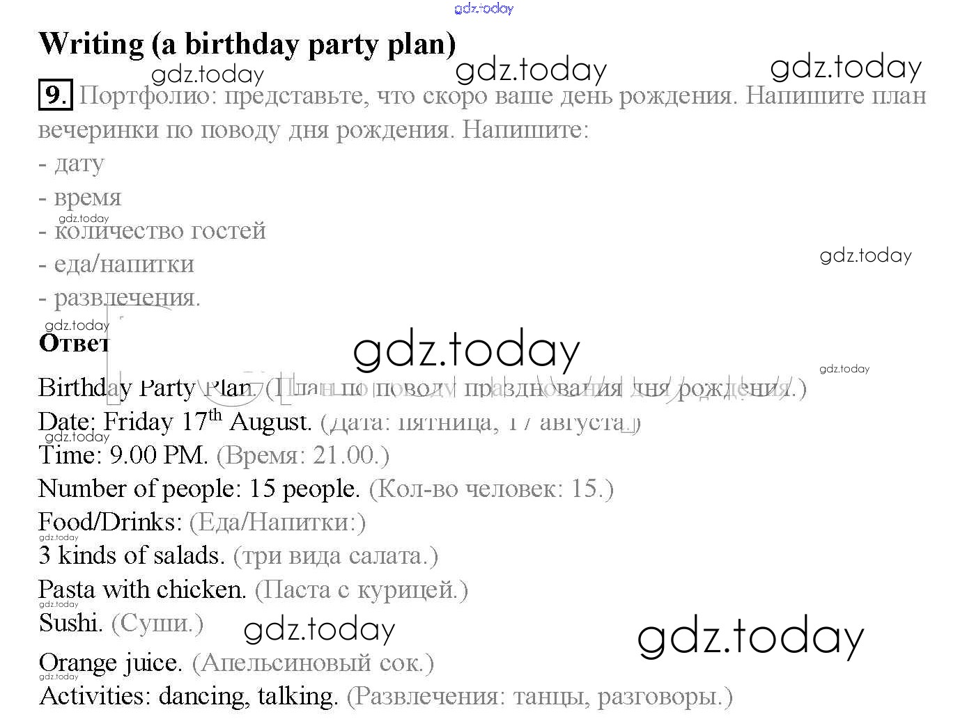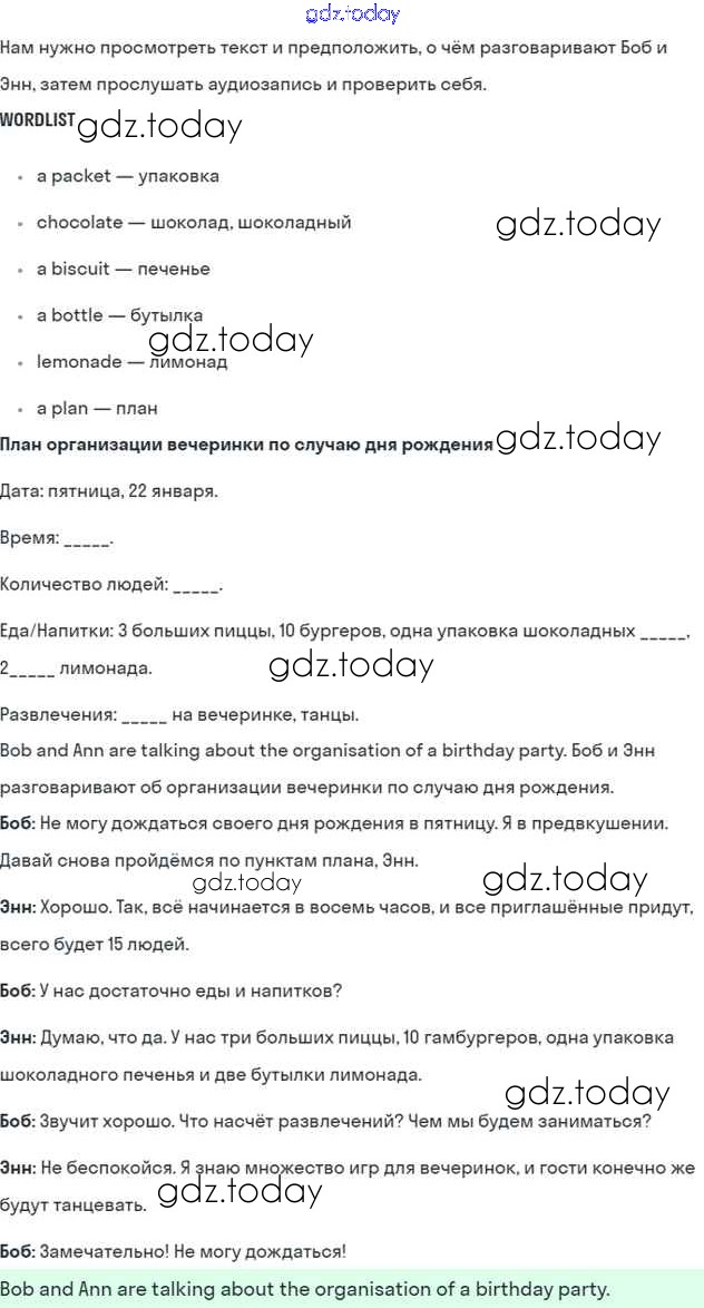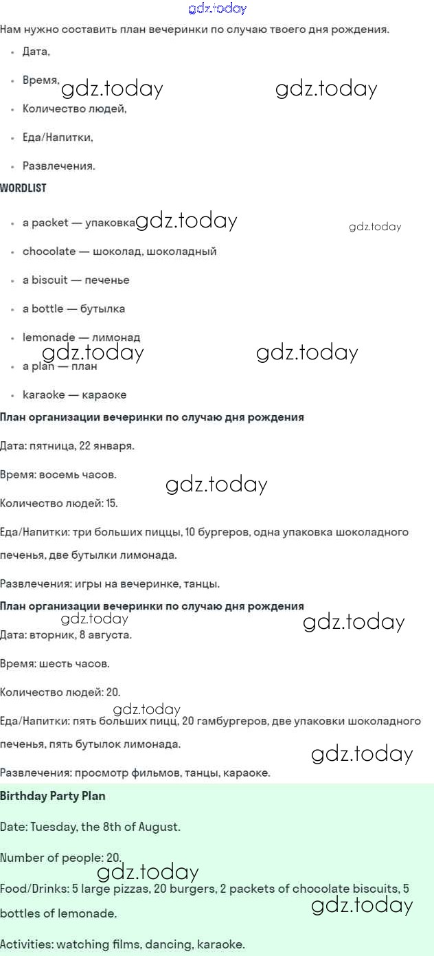 На страницах сайта gdz.today вы найдете учебный и вспомогательный материал, направленный на улучшения знаний школьной программы. ГДЗ - онлайн мир знаний Решение к Module 8. Special days стр. 99 Учебнику по Английскому языку для 5 класса Ваулина, Дули Просвещение Spotlight 2015