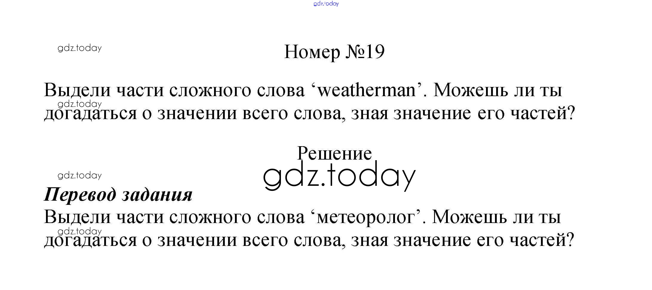 На страницах сайта gdz.today вы найдете учебный и вспомогательный материал, направленный на улучшения знаний школьной программы. ГДЗ - онлайн мир знаний Решение к Unit 1. Let’s make a magazine 19 Учебнику по Английскому языку для 5 класса Вербицкая, Эббс Вентана-граф Forward 2016