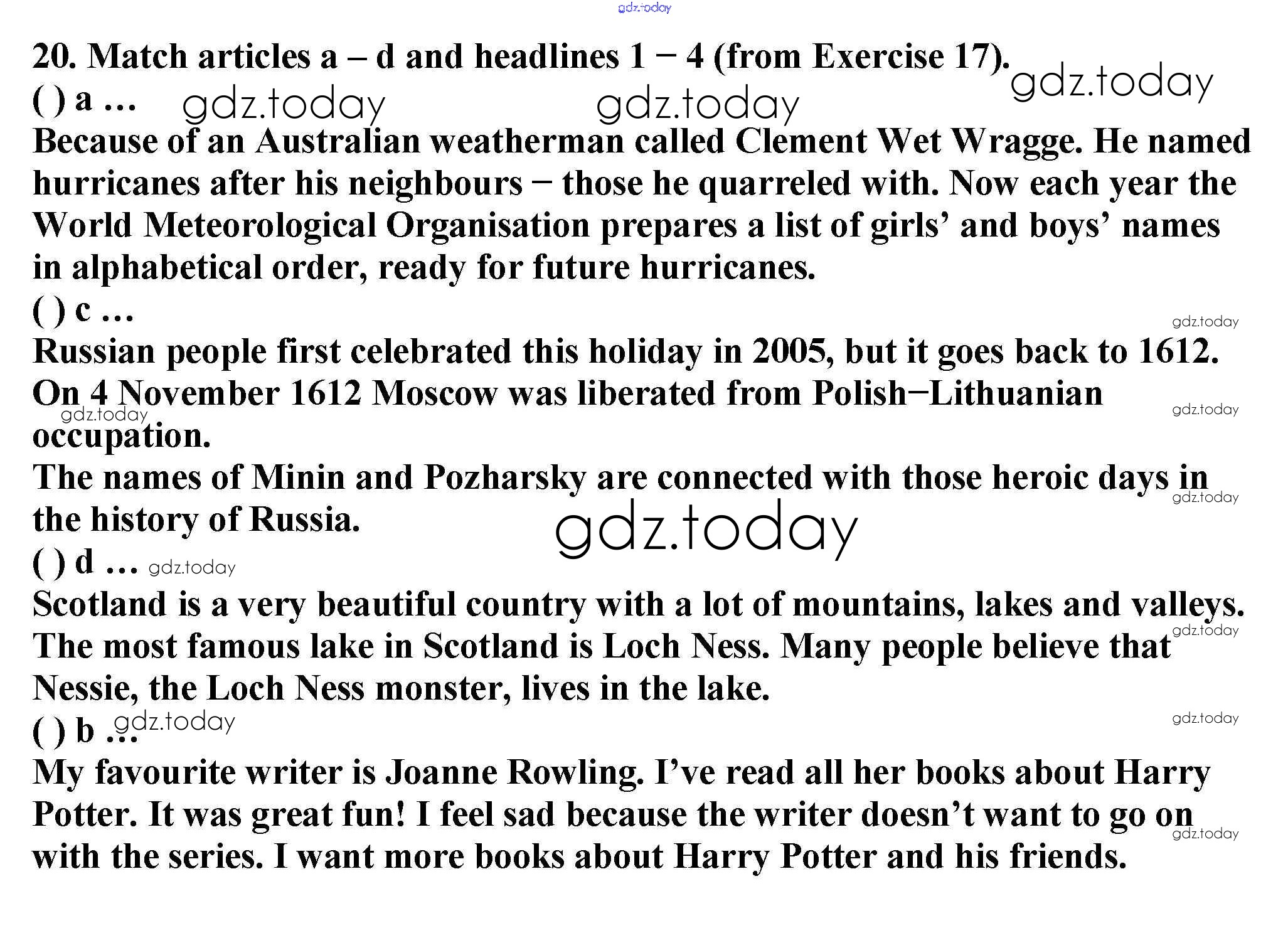 На страницах сайта gdz.today вы найдете учебный и вспомогательный материал, направленный на улучшения знаний школьной программы. ГДЗ - онлайн мир знаний Решение к Unit 1. Let’s make a magazine 20 Учебнику по Английскому языку для 5 класса Вербицкая, Эббс Вентана-граф Forward 2016