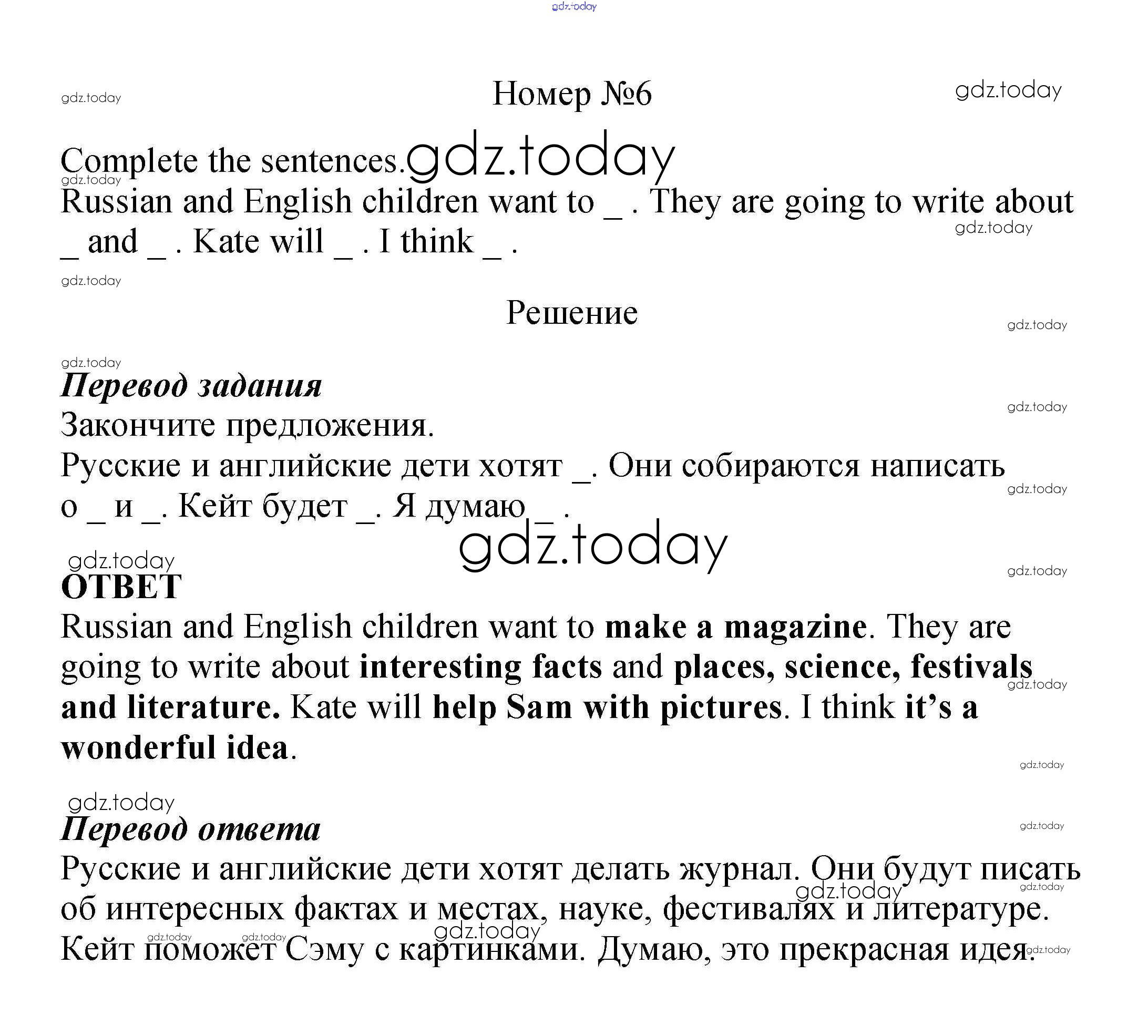 На страницах сайта gdz.today вы найдете учебный и вспомогательный материал, направленный на улучшения знаний школьной программы. ГДЗ - онлайн мир знаний Решение к Unit 1. Let’s make a magazine 6 Учебнику по Английскому языку для 5 класса Вербицкая, Эббс Вентана-граф Forward 2016