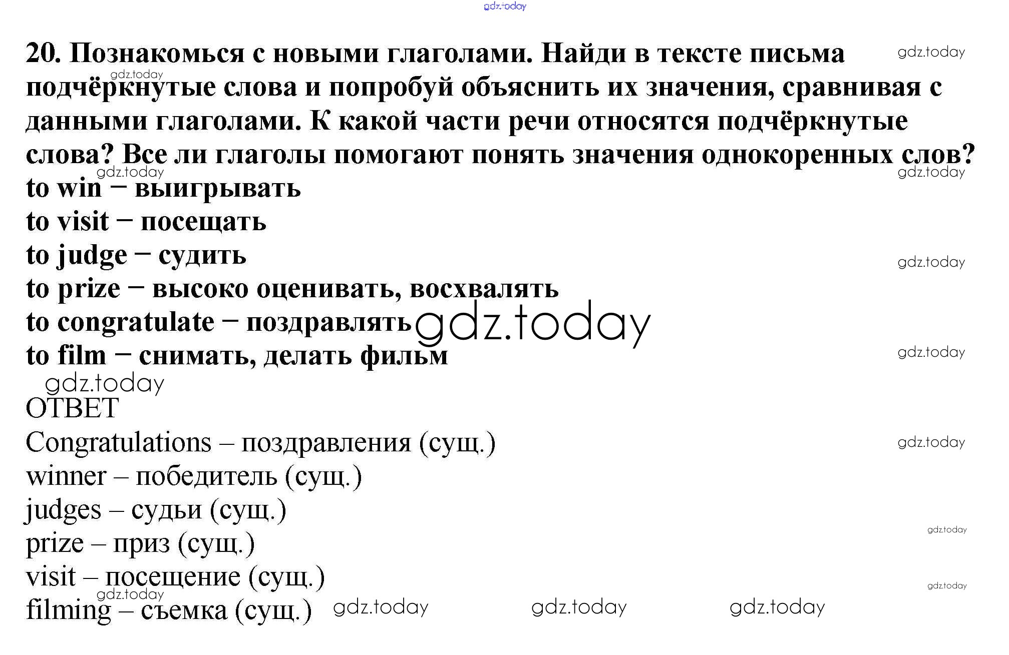 На страницах сайта gdz.today вы найдете учебный и вспомогательный материал, направленный на улучшения знаний школьной программы. ГДЗ - онлайн мир знаний Решение к Unit 2. The competition 20 Учебнику по Английскому языку для 5 класса Вербицкая, Эббс Вентана-граф Forward 2016