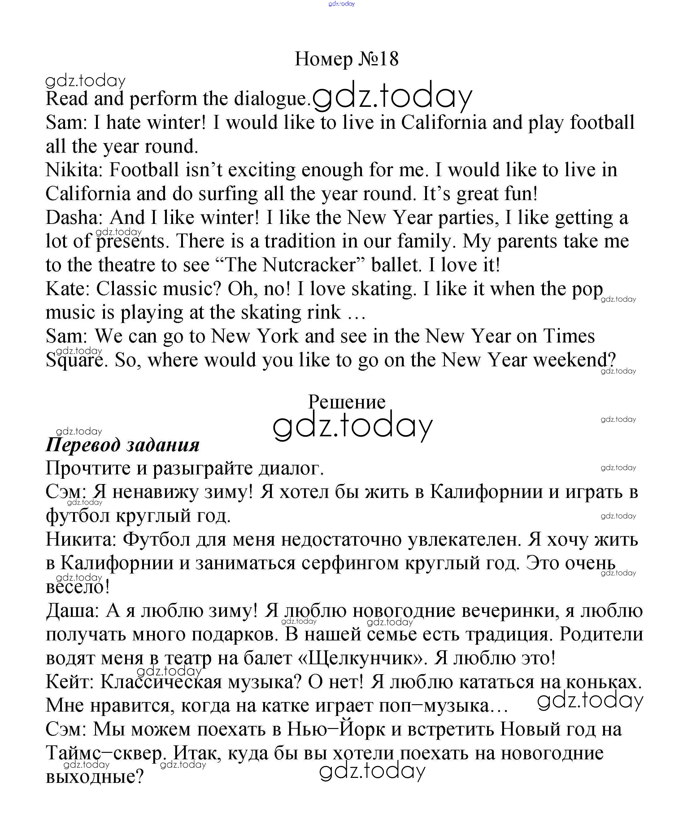 На страницах сайта gdz.today вы найдете учебный и вспомогательный материал, направленный на улучшения знаний школьной программы. ГДЗ - онлайн мир знаний Решение к Unit 8. Holidays in the USA 18 Учебнику по Английскому языку для 5 класса Вербицкая, Эббс Вентана-граф Forward 2016