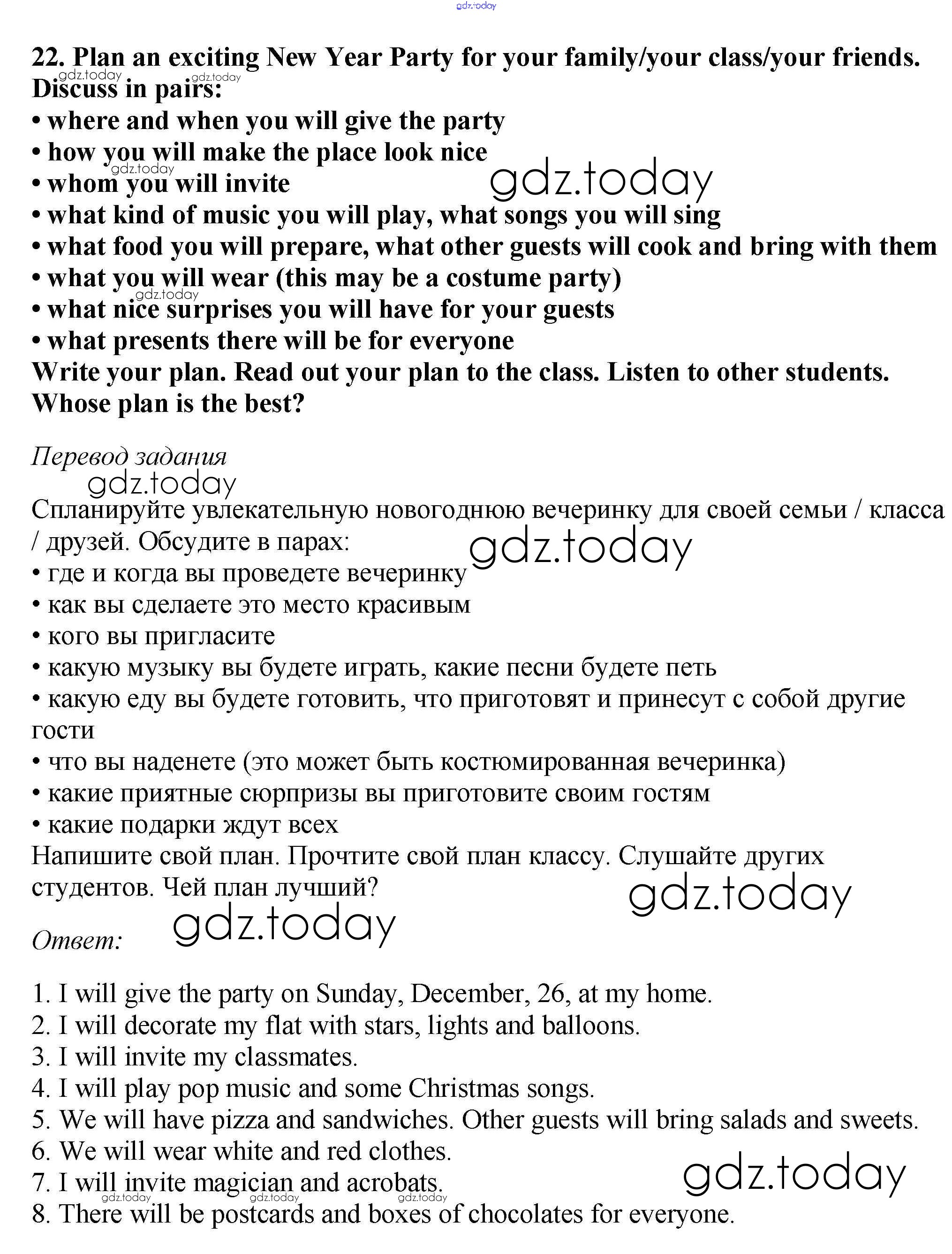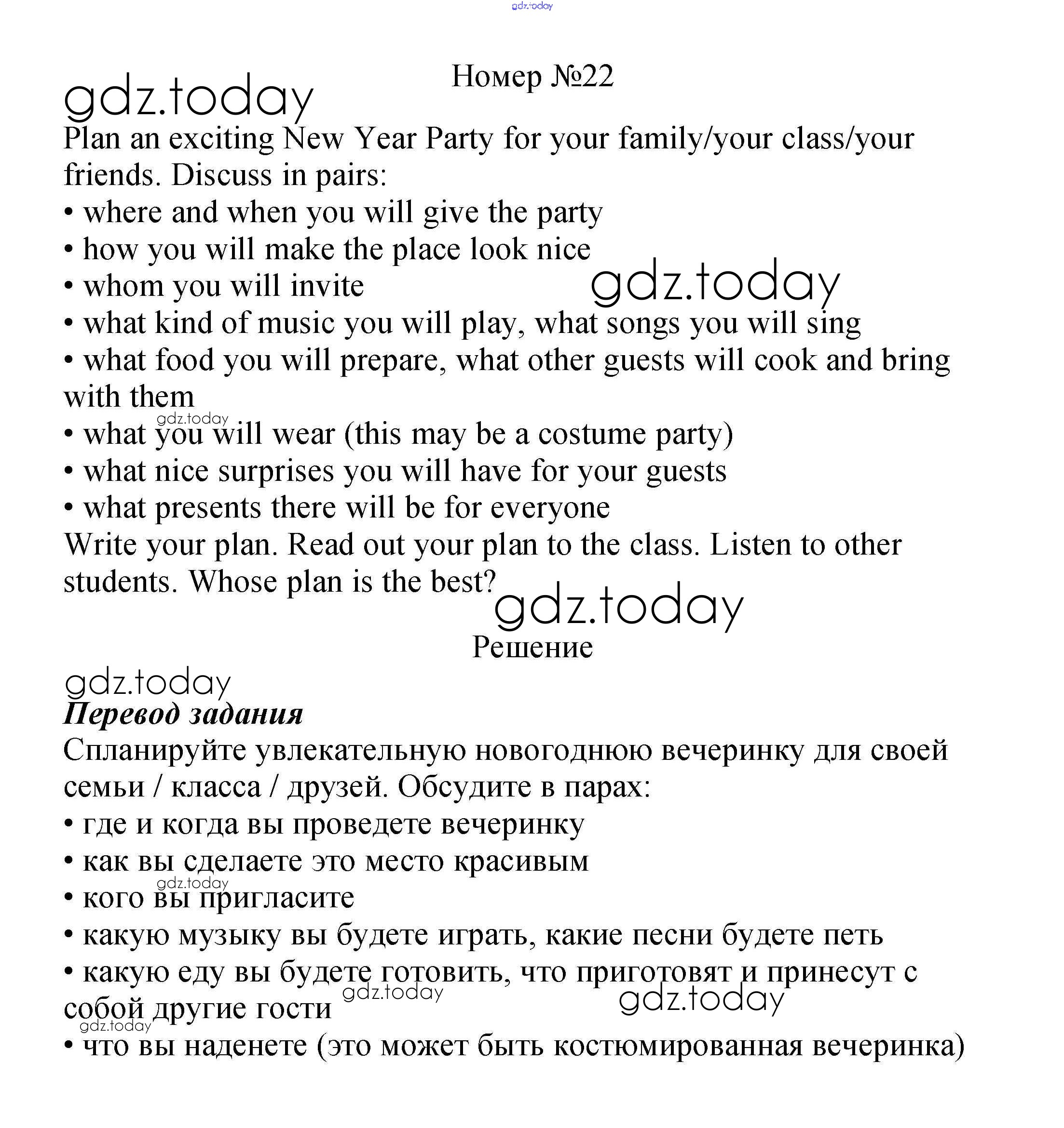 На страницах сайта gdz.today вы найдете учебный и вспомогательный материал, направленный на улучшения знаний школьной программы. ГДЗ - онлайн мир знаний Решение к Unit 8. Holidays in the USA 22 Учебнику по Английскому языку для 5 класса Вербицкая, Эббс Вентана-граф Forward 2016