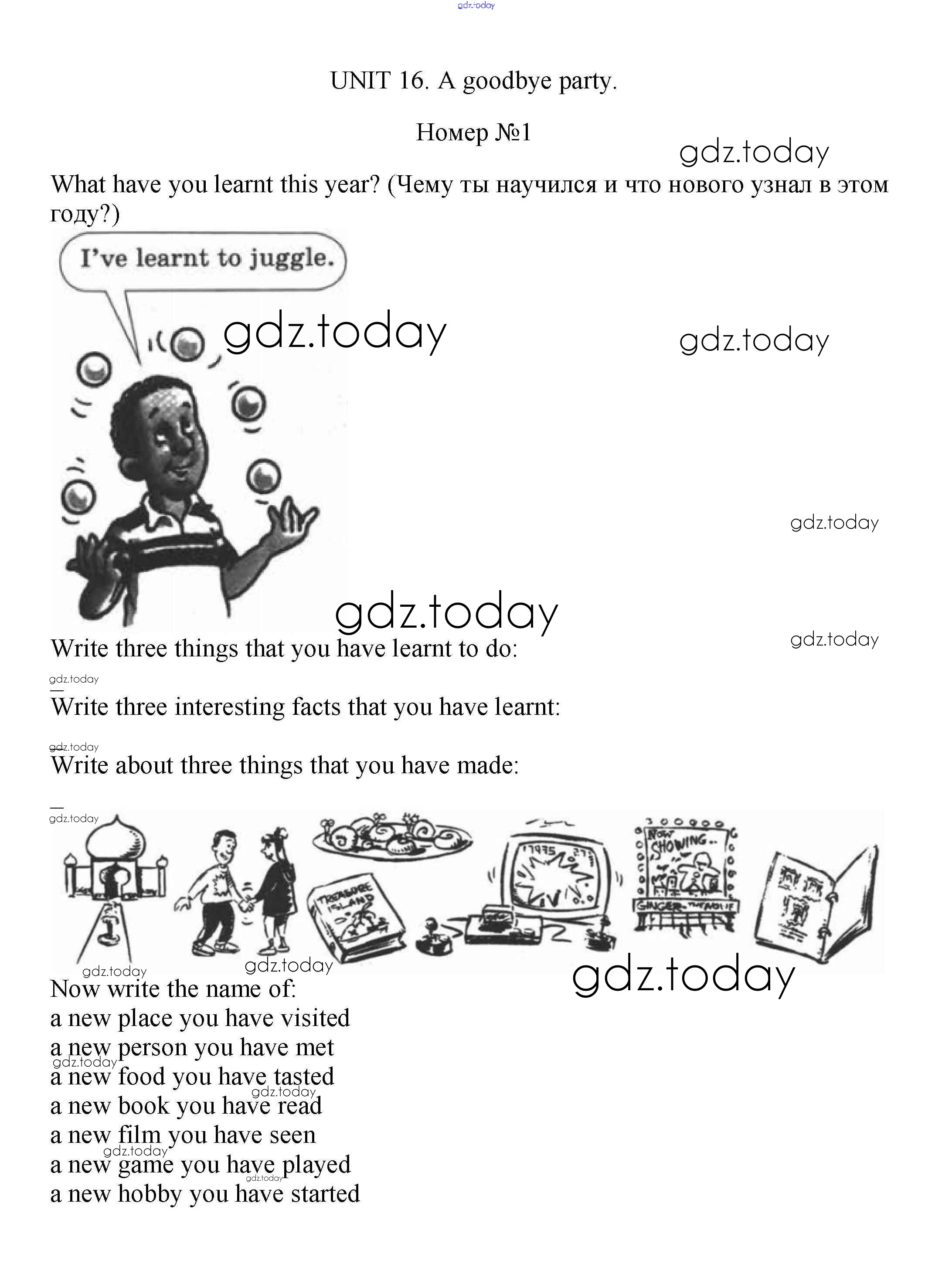 На страницах сайта gdz.today вы найдете учебный и вспомогательный материал, направленный на улучшения знаний школьной программы. ГДЗ - онлайн мир знаний Решение к Unit 16. A goodbye party 1 Рабочей тетради по Английскому языку для 5 класса Вербицкая, Твердохлебова Вентана-граф Forward 2016