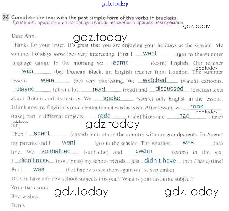 На страницах сайта gdz.today вы найдете учебный и вспомогательный материал, направленный на улучшения знаний школьной программы. ГДЗ - онлайн мир знаний Exercises Решения к Unit 1 24 Рабочей тетради по Английскому языку для 5 класса Биболетова, Денисенко Дрофа, Титул Enjoy English 2019, 2015