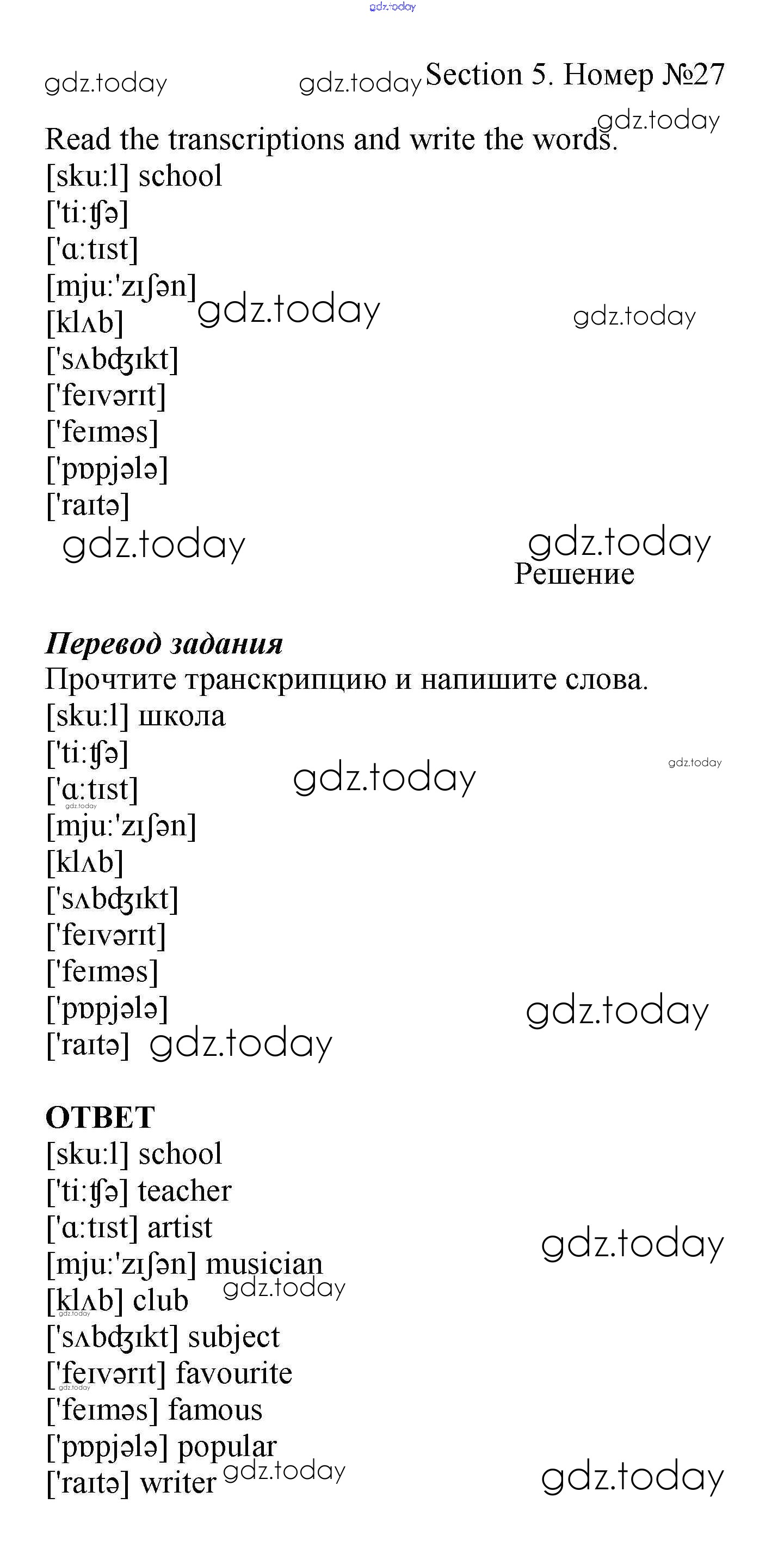 На страницах сайта gdz.today вы найдете учебный и вспомогательный материал, направленный на улучшения знаний школьной программы. ГДЗ - онлайн мир знаний Exercises Решения к Unit 1 27 Рабочей тетради по Английскому языку для 5 класса Биболетова, Денисенко Дрофа, Титул Enjoy English 2019, 2015