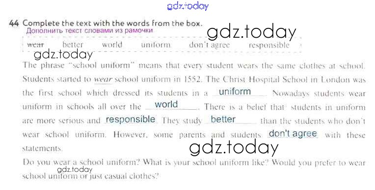 На страницах сайта gdz.today вы найдете учебный и вспомогательный материал, направленный на улучшения знаний школьной программы. ГДЗ - онлайн мир знаний Exercises Решения к Unit 1 44 Рабочей тетради по Английскому языку для 5 класса Биболетова, Денисенко Дрофа, Титул Enjoy English 2019, 2015