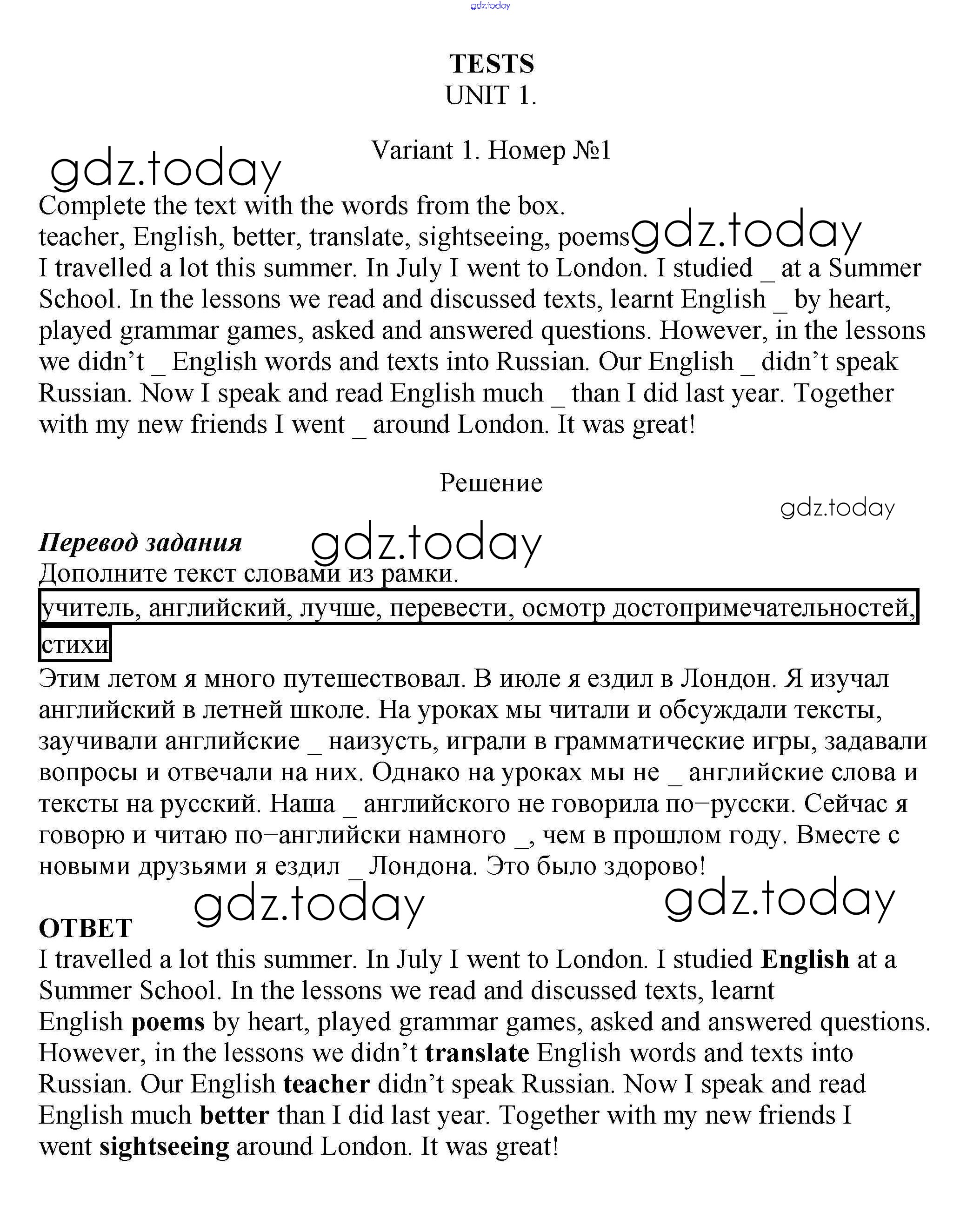 На страницах сайта gdz.today вы найдете учебный и вспомогательный материал, направленный на улучшения знаний школьной программы. ГДЗ - онлайн мир знаний Variant 1 Test 1 Рабочей тетради по Английскому языку для 5 класса Биболетова, Денисенко Дрофа, Титул Enjoy English 2019, 2015