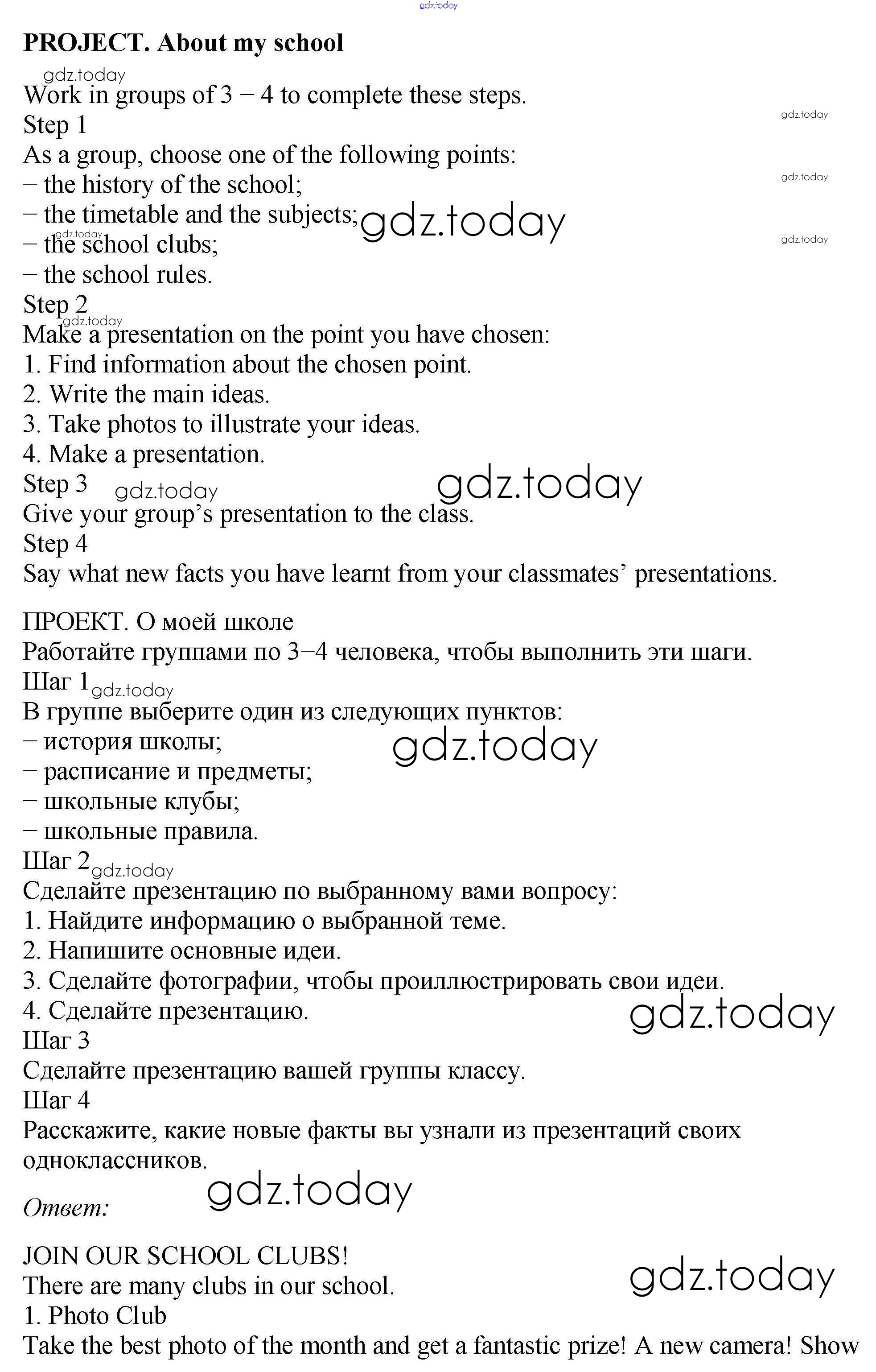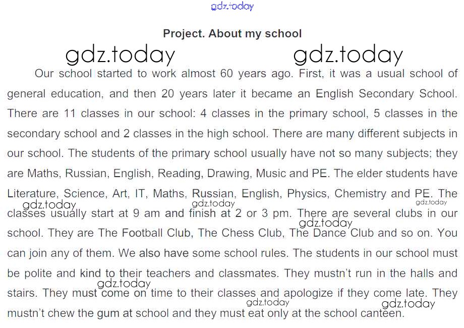 На страницах сайта gdz.today вы найдете учебный и вспомогательный материал, направленный на улучшения знаний школьной программы. ГДЗ - онлайн мир знаний Project. About my school Решения к Unit 1 1 Рабочей тетради по Английскому языку для 5 класса Биболетова, Денисенко Дрофа, Титул Enjoy English 2019, 2015