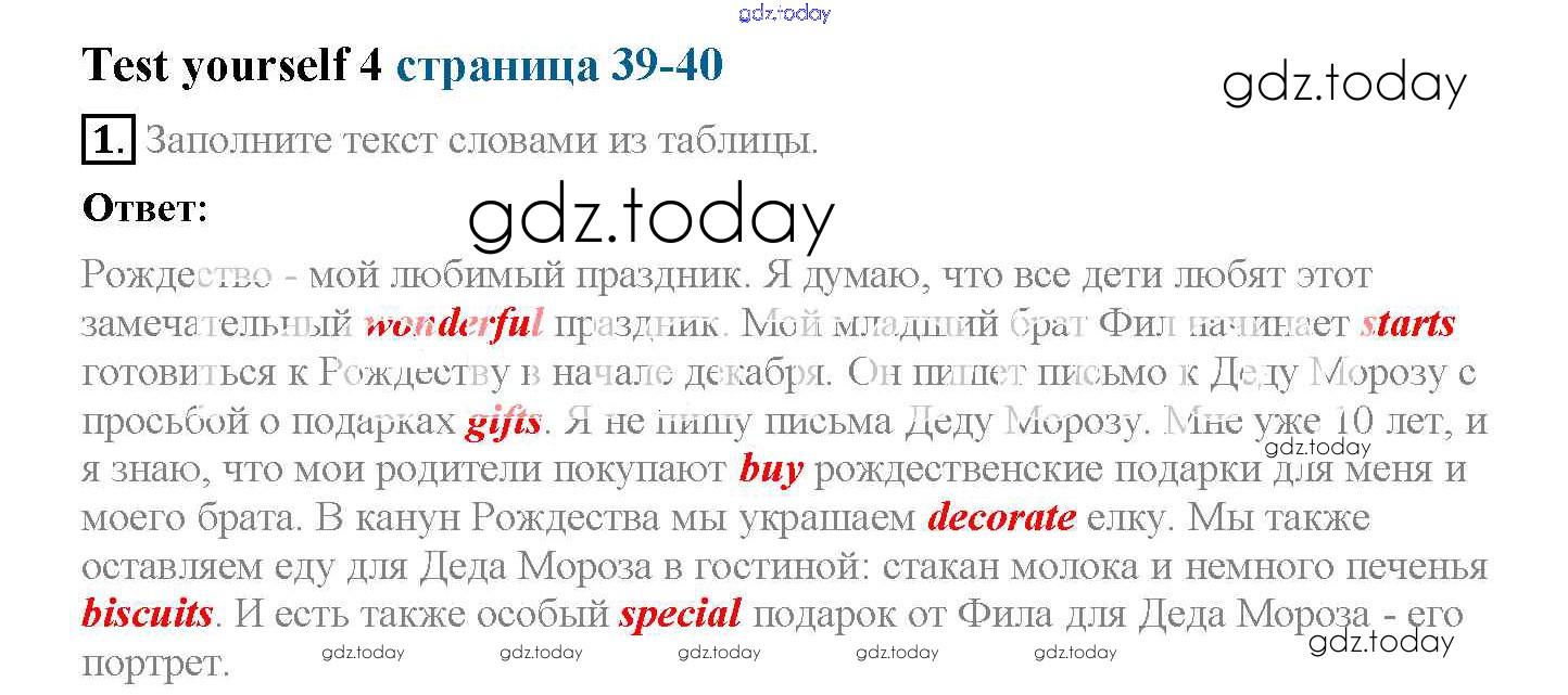 На страницах сайта gdz.today вы найдете учебный и вспомогательный материал, направленный на улучшения знаний школьной программы. ГДЗ - онлайн мир знаний Test yourself 4 Решения к Unit 2 1 Рабочей тетради по Английскому языку для 5 класса Биболетова, Денисенко Дрофа, Титул Enjoy English 2019, 2015
