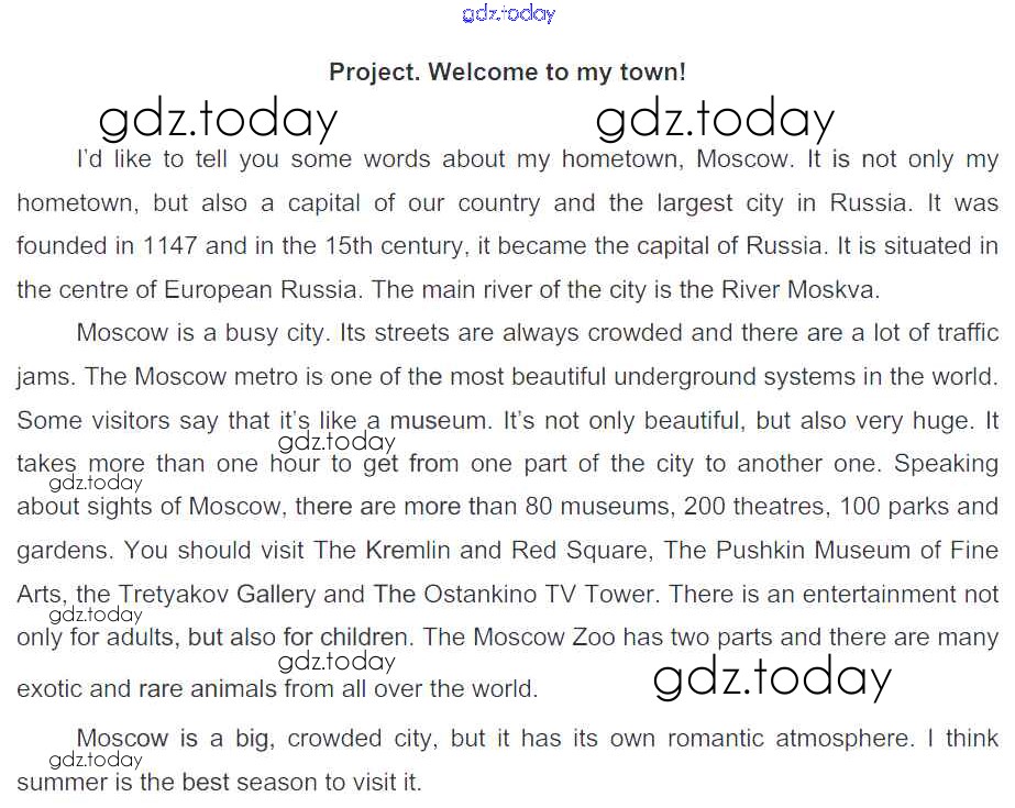 На страницах сайта gdz.today вы найдете учебный и вспомогательный материал, направленный на улучшения знаний школьной программы. ГДЗ - онлайн мир знаний Project. Welcome to my town! Решения к Unit 3 1 Рабочей тетради по Английскому языку для 5 класса Биболетова, Денисенко Дрофа, Титул Enjoy English 2019, 2015