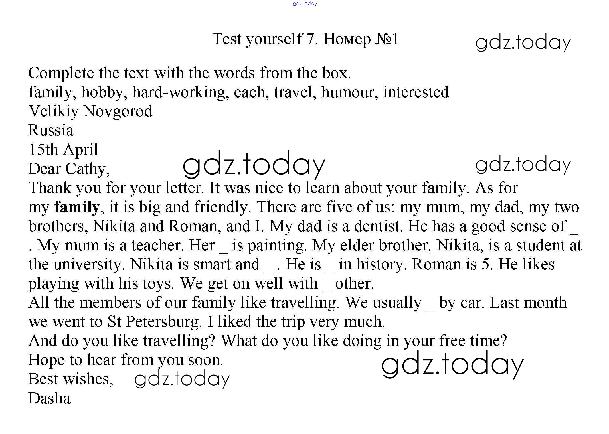 На страницах сайта gdz.today вы найдете учебный и вспомогательный материал, направленный на улучшения знаний школьной программы. ГДЗ - онлайн мир знаний Test yourself 7 Решения к Unit 4 1 Рабочей тетради по Английскому языку для 5 класса Биболетова, Денисенко Дрофа, Титул Enjoy English 2019, 2015