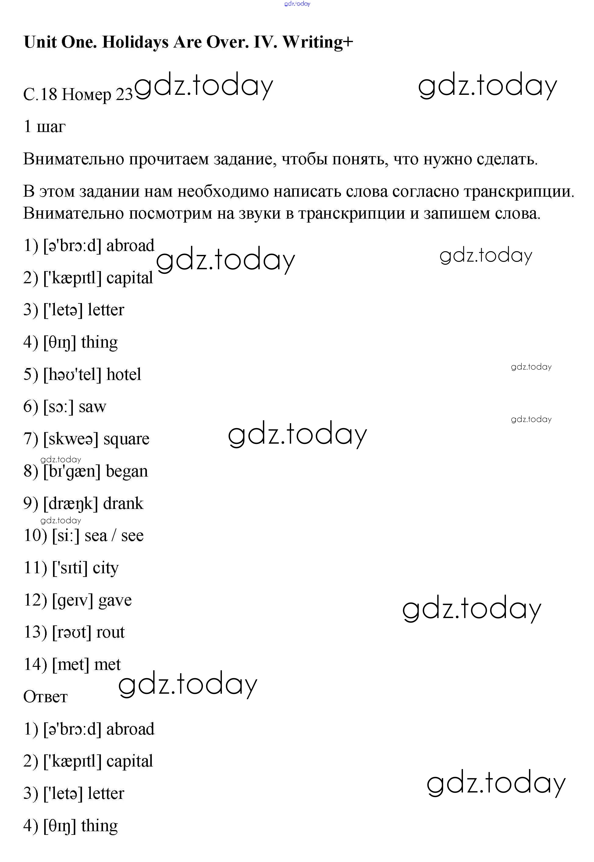 Ответы к Решение к Unit 1. Holidays Are Over 23 Рабочей тетради по Английскому языку для 5 класса Афанасьева, Михеева Дрофа Rainbow 2017