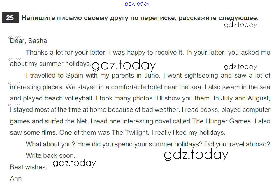 Ответы к Решение к Unit 1. Holidays Are Over 25 Рабочей тетради по Английскому языку для 5 класса Афанасьева, Михеева Дрофа Rainbow 2017
