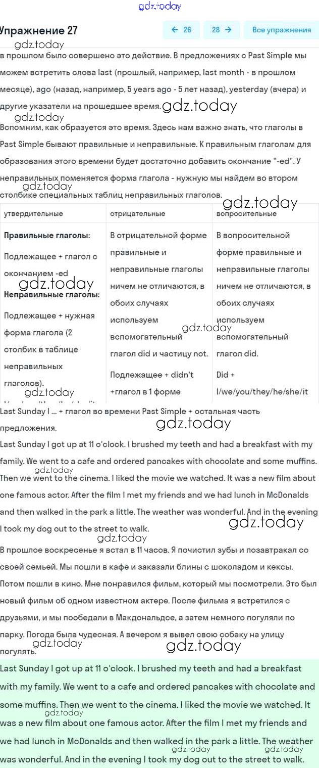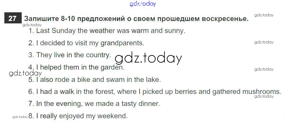 На страницах сайта gdz.today вы найдете учебный и вспомогательный материал, направленный на улучшения знаний школьной программы. ГДЗ - онлайн мир знаний Решение к Unit 1. Holidays Are Over 27 Рабочей тетради по Английскому языку для 5 класса Афанасьева, Михеева Дрофа Rainbow 2017