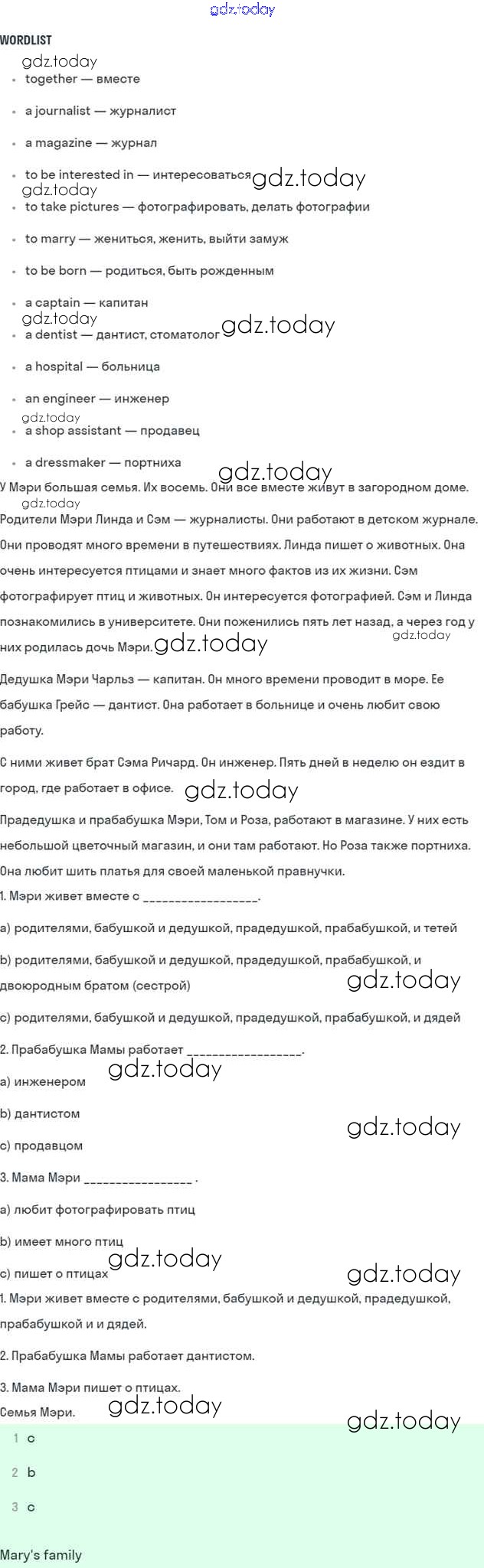 Ответы к Решение к Unit 2. Family History 1 Рабочей тетради по Английскому языку для 5 класса Афанасьева, Михеева Дрофа Rainbow 2017