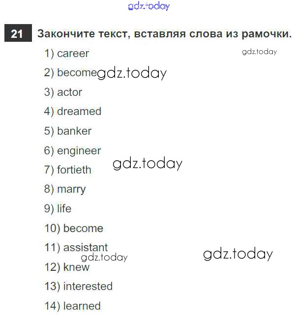 На страницах сайта gdz.today вы найдете учебный и вспомогательный материал, направленный на улучшения знаний школьной программы. ГДЗ - онлайн мир знаний Решение к Unit 2. Family History 21 Рабочей тетради по Английскому языку для 5 класса Афанасьева, Михеева Дрофа Rainbow 2017