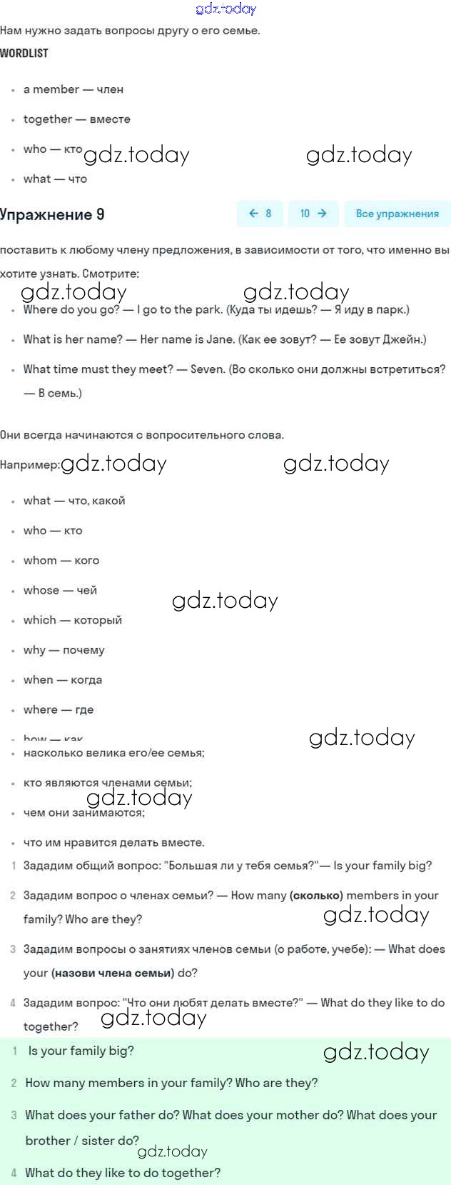 На страницах сайта gdz.today вы найдете учебный и вспомогательный материал, направленный на улучшения знаний школьной программы. ГДЗ - онлайн мир знаний Решение к Unit 2. Family History 9 Рабочей тетради по Английскому языку для 5 класса Афанасьева, Михеева Дрофа Rainbow 2017