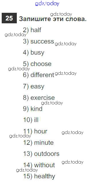 На страницах сайта gdz.today вы найдете учебный и вспомогательный материал, направленный на улучшения знаний школьной программы. ГДЗ - онлайн мир знаний Решение к Unit 3. Healthy Ways 25 Рабочей тетради по Английскому языку для 5 класса Афанасьева, Михеева Дрофа Rainbow 2017