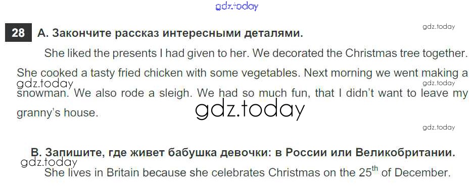 На страницах сайта gdz.today вы найдете учебный и вспомогательный материал, направленный на улучшения знаний школьной программы. ГДЗ - онлайн мир знаний Решение к Unit 3. Healthy Ways 28 Рабочей тетради по Английскому языку для 5 класса Афанасьева, Михеева Дрофа Rainbow 2017
