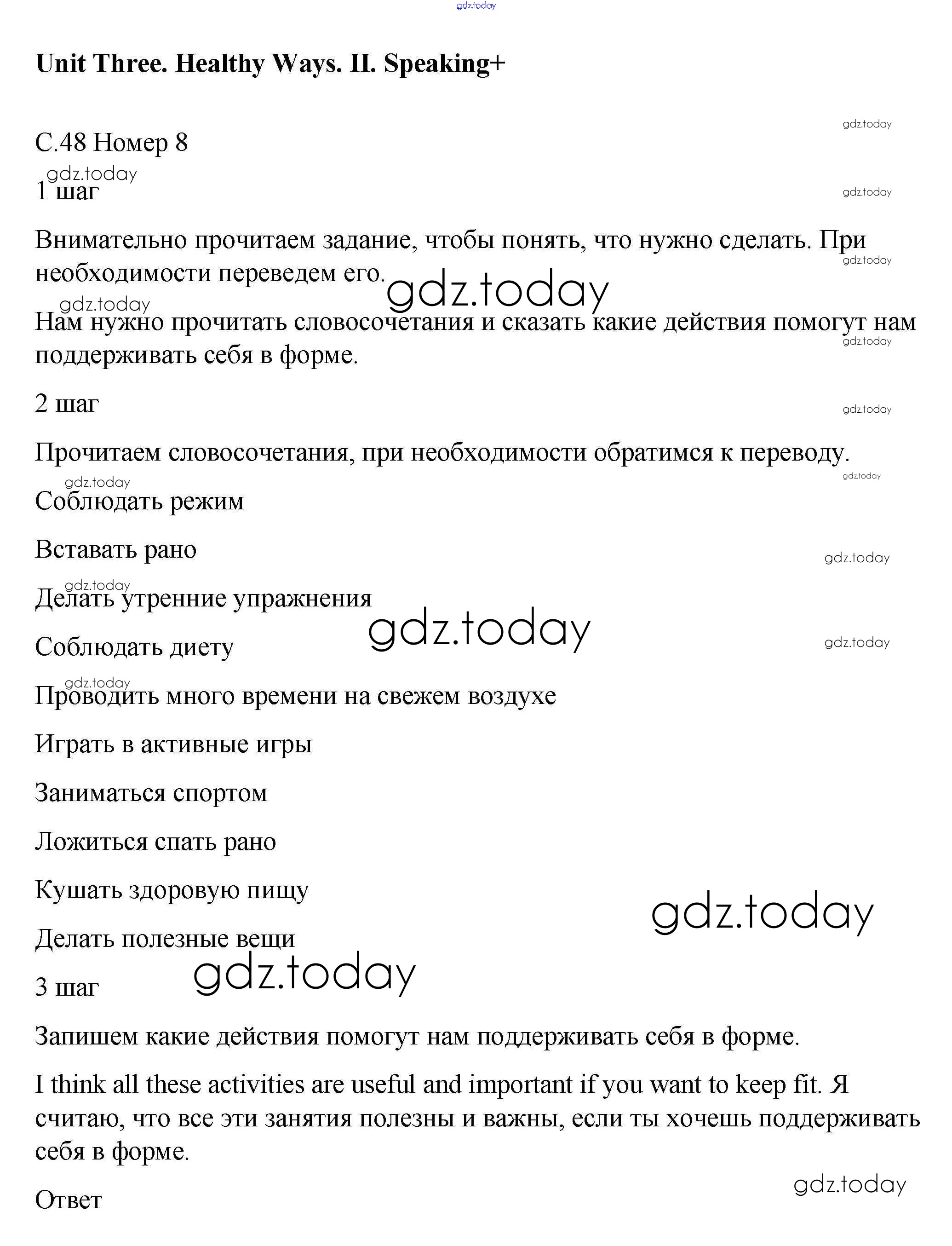 Ответы к Решение к Unit 3. Healthy Ways 8 Рабочей тетради по Английскому языку для 5 класса Афанасьева, Михеева Дрофа Rainbow 2017