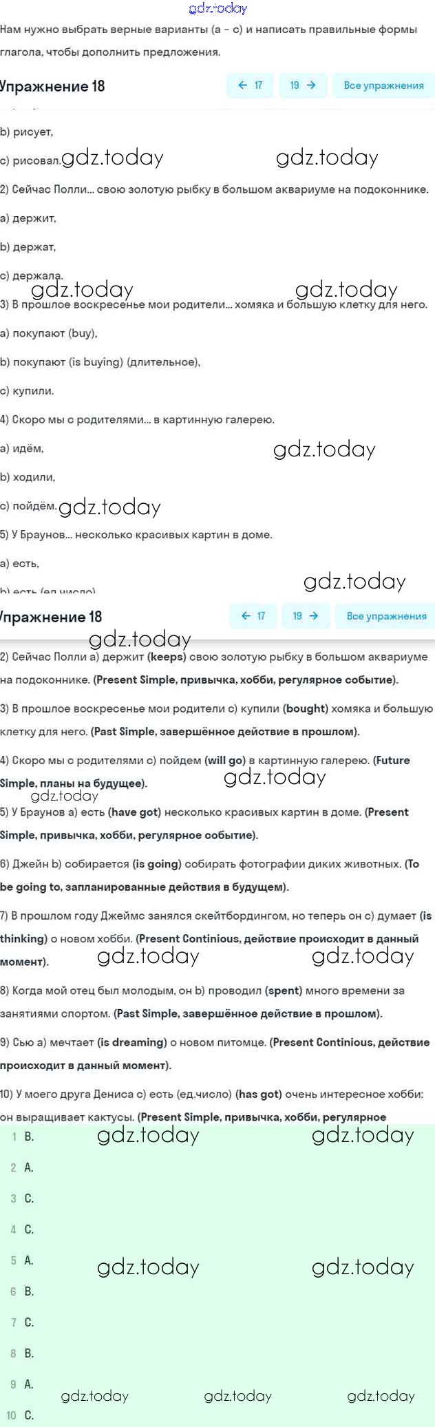 Ответы к Решение к Unit 4. After School 18 Рабочей тетради по Английскому языку для 5 класса Афанасьева, Михеева Дрофа Rainbow 2017