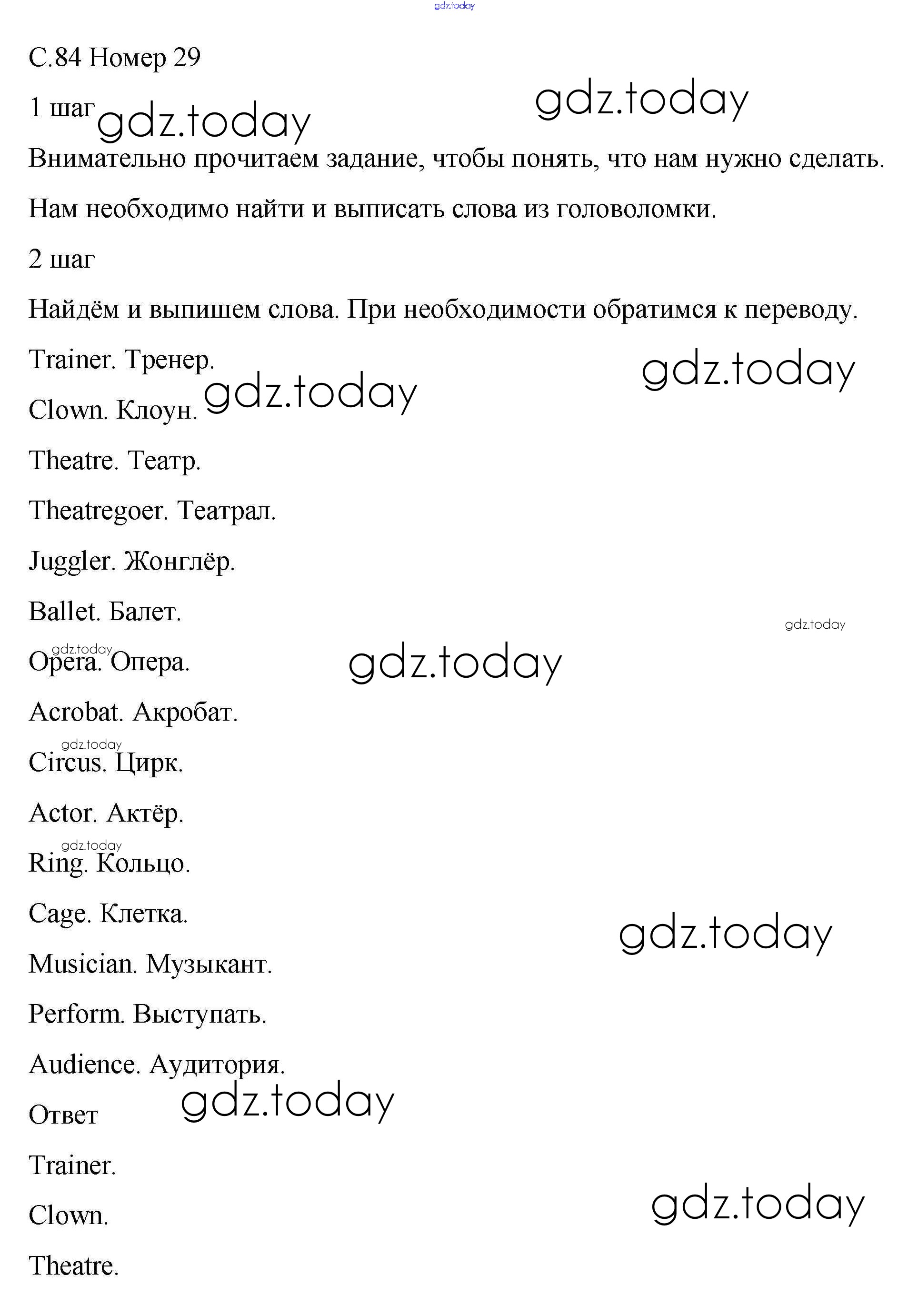 На страницах сайта gdz.today вы найдете учебный и вспомогательный материал, направленный на улучшения знаний школьной программы. ГДЗ - онлайн мир знаний Решение к Unit 4. After School 29 Рабочей тетради по Английскому языку для 5 класса Афанасьева, Михеева Дрофа Rainbow 2017