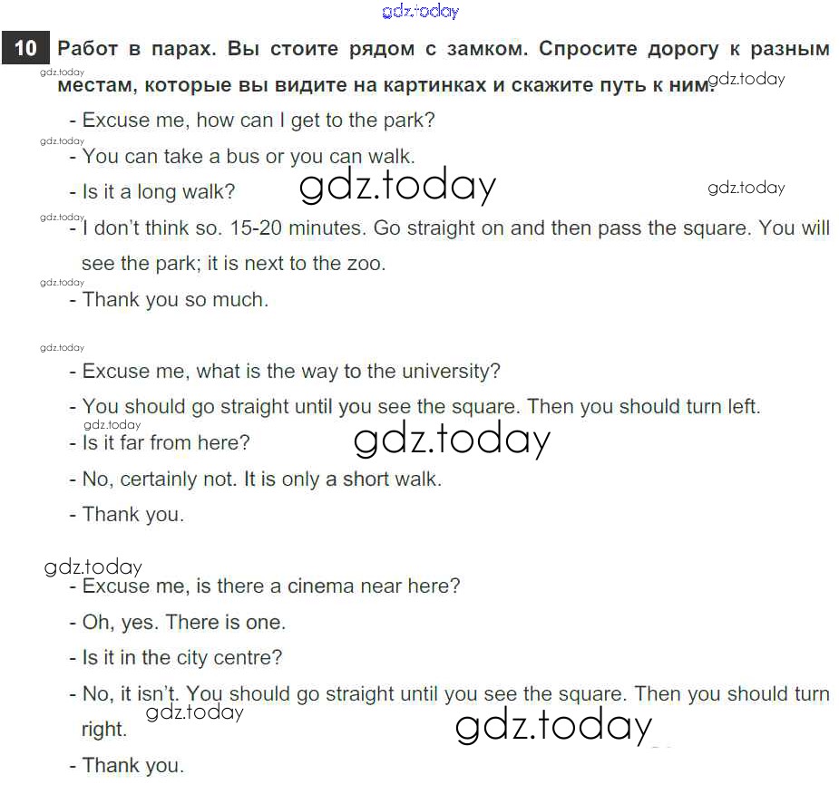 На страницах сайта gdz.today вы найдете учебный и вспомогательный материал, направленный на улучшения знаний школьной программы. ГДЗ - онлайн мир знаний Решение к Unit 5. From Place to Place 10 Рабочей тетради по Английскому языку для 5 класса Афанасьева, Михеева Дрофа Rainbow 2017
