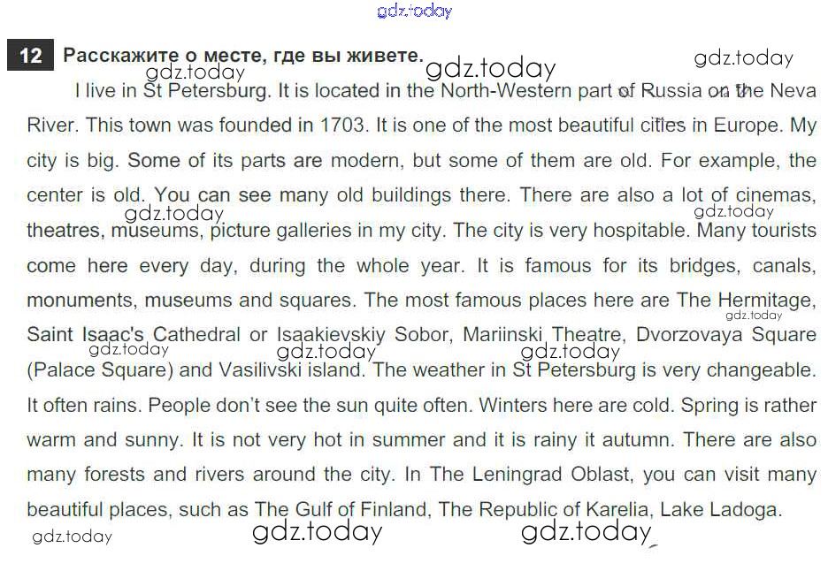 На страницах сайта gdz.today вы найдете учебный и вспомогательный материал, направленный на улучшения знаний школьной программы. ГДЗ - онлайн мир знаний Решение к Unit 5. From Place to Place 12 Рабочей тетради по Английскому языку для 5 класса Афанасьева, Михеева Дрофа Rainbow 2017