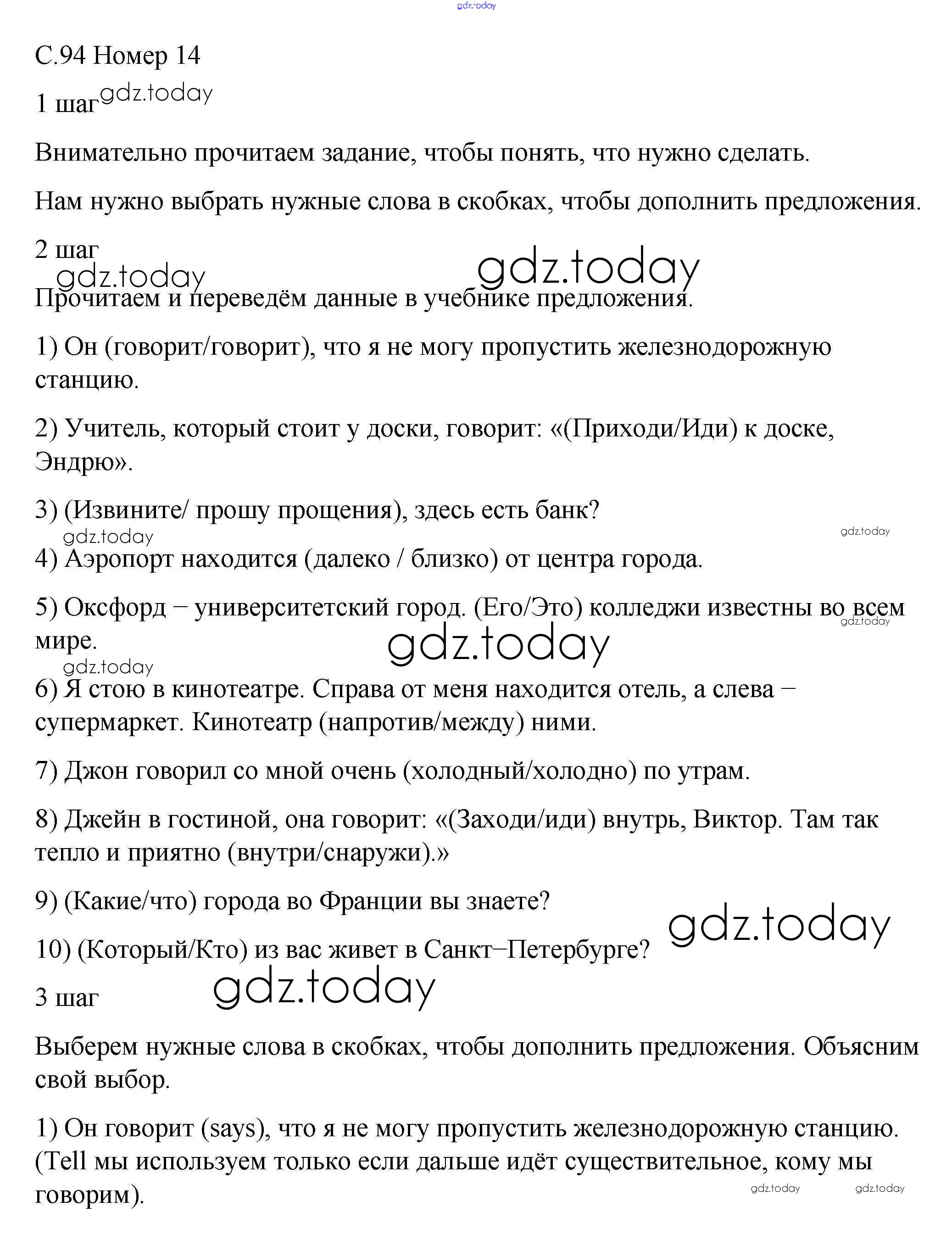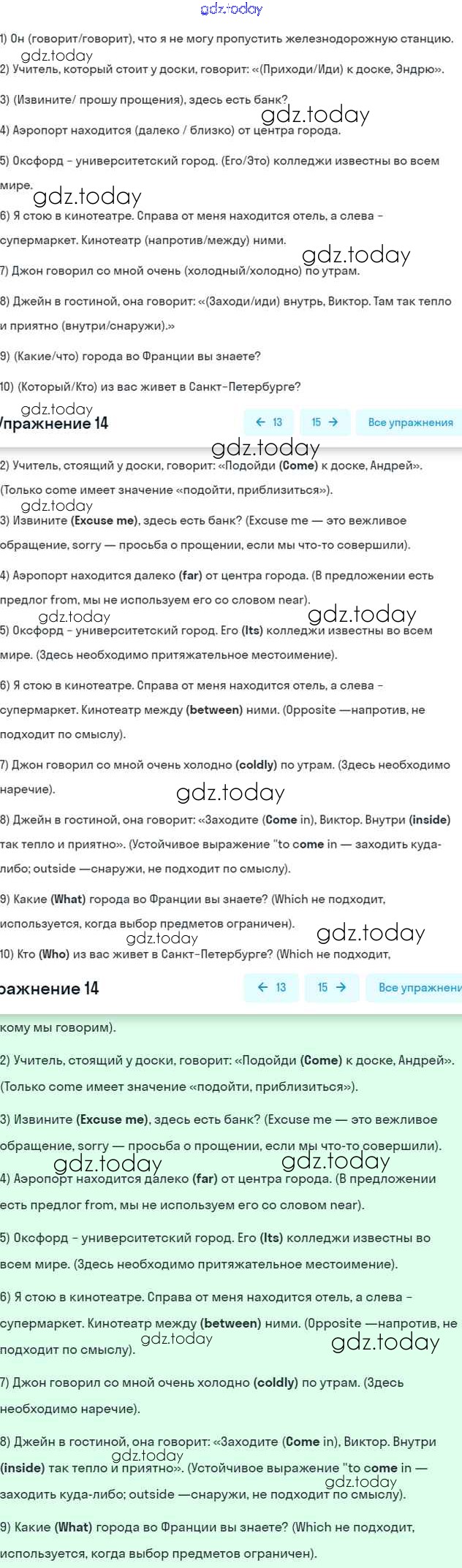 На страницах сайта gdz.today вы найдете учебный и вспомогательный материал, направленный на улучшения знаний школьной программы. ГДЗ - онлайн мир знаний Решение к Unit 5. From Place to Place 14 Рабочей тетради по Английскому языку для 5 класса Афанасьева, Михеева Дрофа Rainbow 2017
