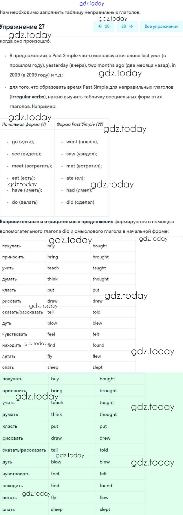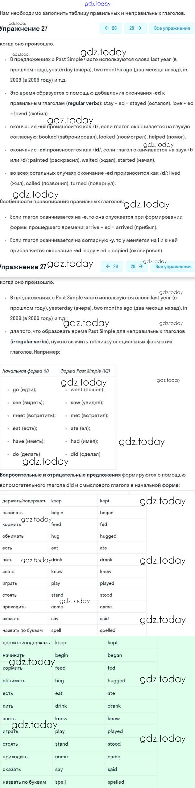На страницах сайта gdz.today вы найдете учебный и вспомогательный материал, направленный на улучшения знаний школьной программы. ГДЗ - онлайн мир знаний Решение к Unit 5. From Place to Place 27 Рабочей тетради по Английскому языку для 5 класса Афанасьева, Михеева Дрофа Rainbow 2017