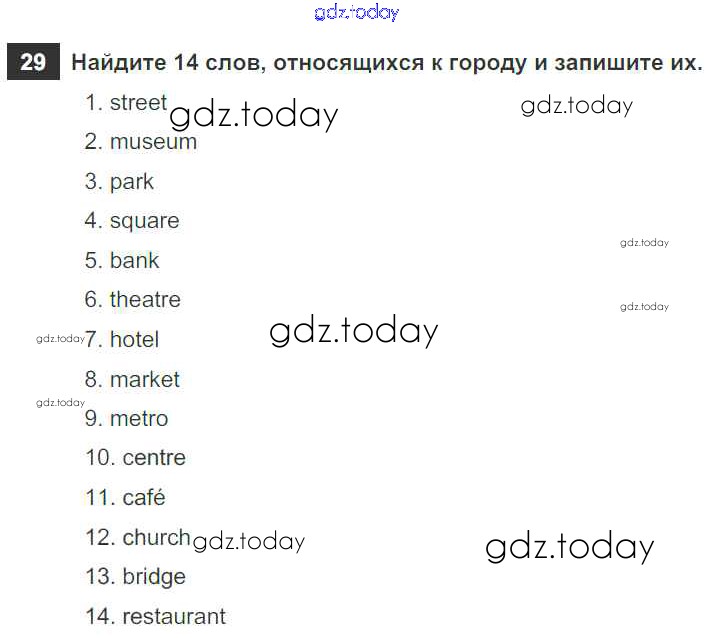 На страницах сайта gdz.today вы найдете учебный и вспомогательный материал, направленный на улучшения знаний школьной программы. ГДЗ - онлайн мир знаний Решение к Unit 5. From Place to Place 29 Рабочей тетради по Английскому языку для 5 класса Афанасьева, Михеева Дрофа Rainbow 2017