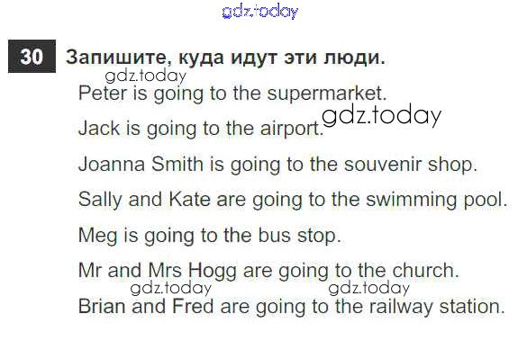 На страницах сайта gdz.today вы найдете учебный и вспомогательный материал, направленный на улучшения знаний школьной программы. ГДЗ - онлайн мир знаний Решение к Unit 5. From Place to Place 30 Рабочей тетради по Английскому языку для 5 класса Афанасьева, Михеева Дрофа Rainbow 2017