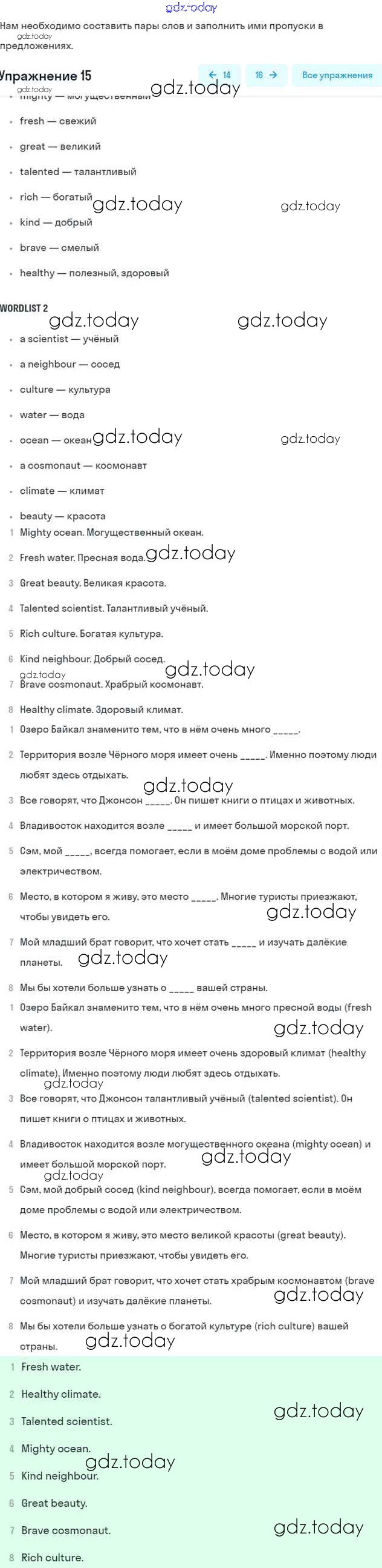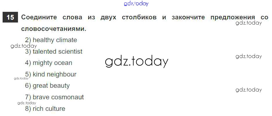 На страницах сайта gdz.today вы найдете учебный и вспомогательный материал, направленный на улучшения знаний школьной программы. ГДЗ - онлайн мир знаний Решение к Unit 6. About Russia 15 Рабочей тетради по Английскому языку для 5 класса Афанасьева, Михеева Дрофа Rainbow 2017