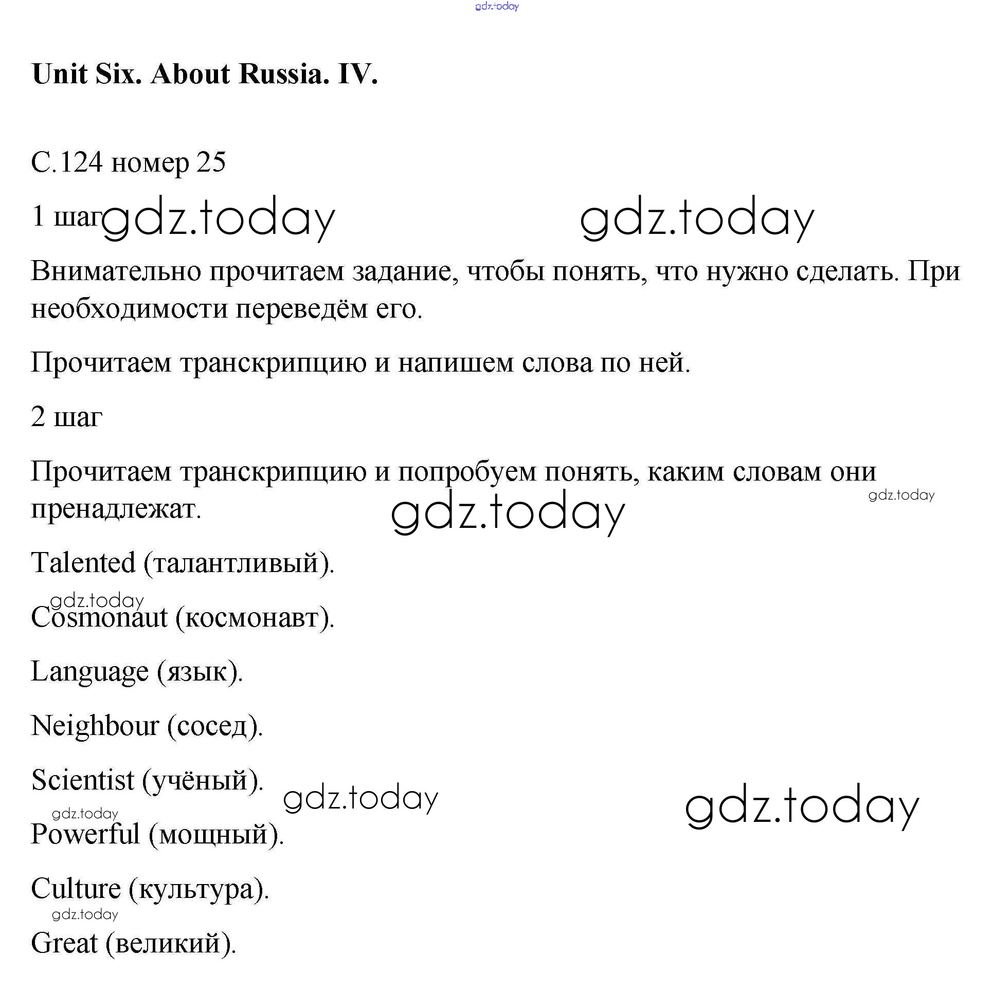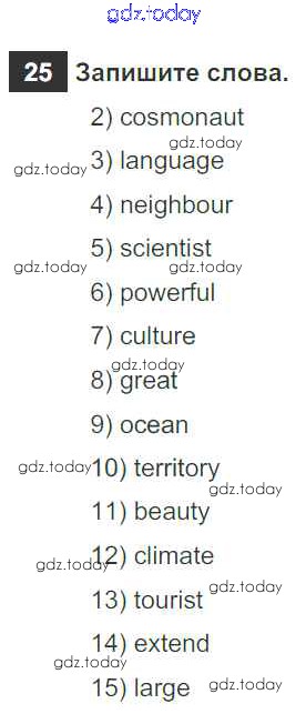 На страницах сайта gdz.today вы найдете учебный и вспомогательный материал, направленный на улучшения знаний школьной программы. ГДЗ - онлайн мир знаний Решение к Unit 6. About Russia 25 Рабочей тетради по Английскому языку для 5 класса Афанасьева, Михеева Дрофа Rainbow 2017