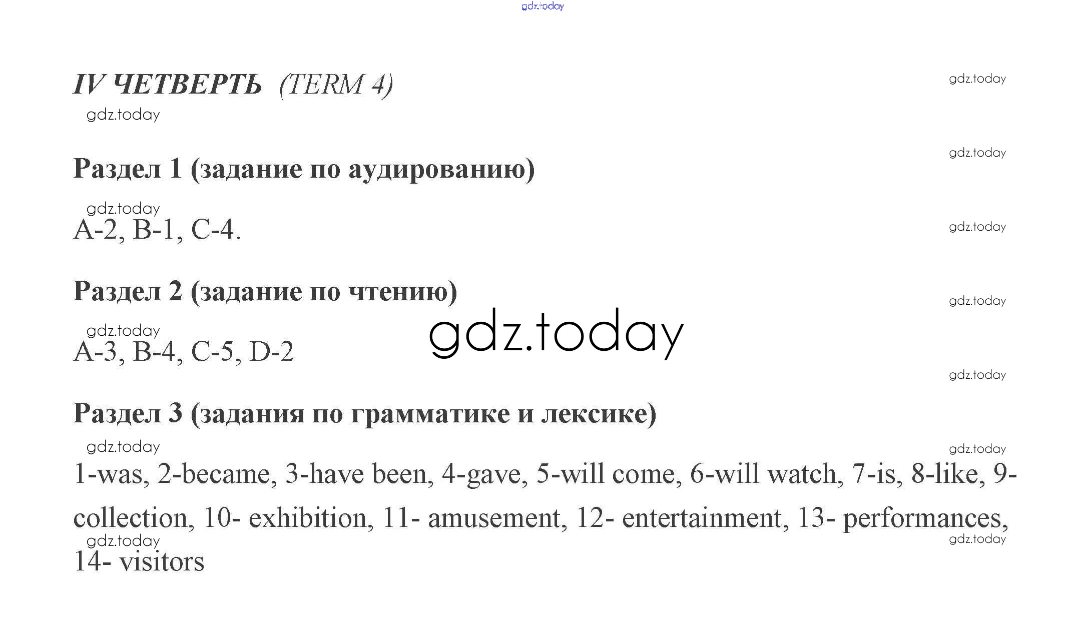 Ответы к Решение к Terms 4 Контрольным заданиям по Английскому языку для 5 класса Кузовлев, Симкин Просвещение 2019