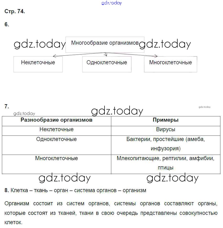 Ответы к Страницы (решение) 74 Рабочей тетради по Естествознанию для 5 класса Пакулова, Иванова Дрофа 2014