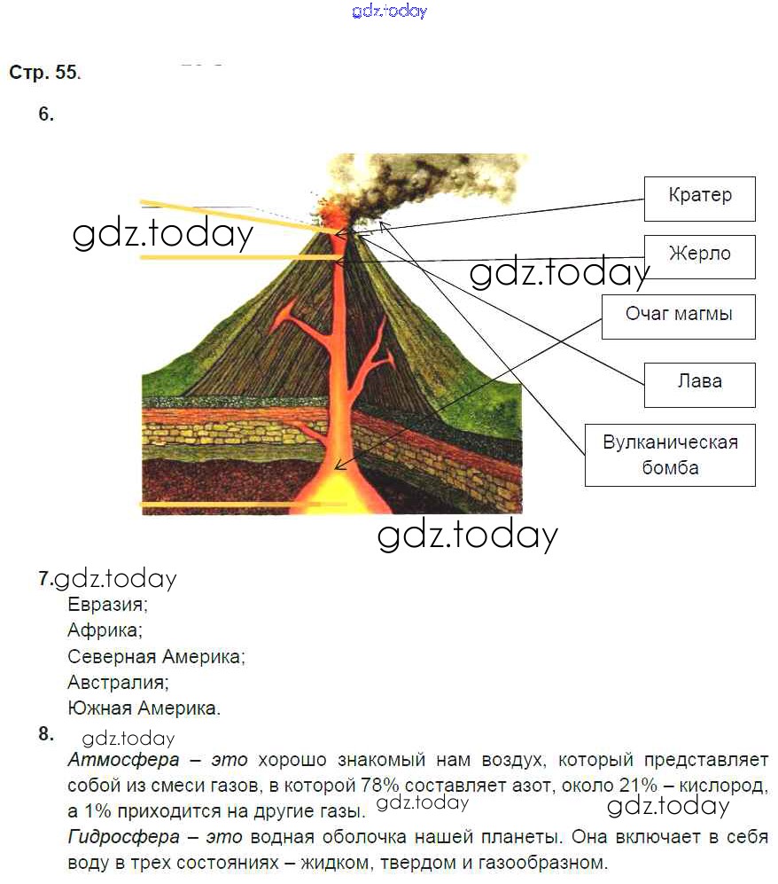 На страницах сайта gdz.today вы найдете учебный и вспомогательный материал, направленный на улучшения знаний школьной программы. ГДЗ - онлайн мир знаний Страницы (решение) 55 Рабочей тетради по Естествознанию для 5 класса Плешаков, Сонин Дрофа Вертикаль 2015