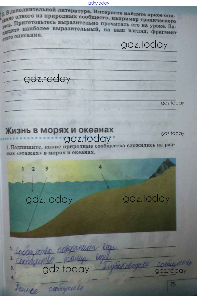 На страницах сайта gdz.today вы найдете учебный и вспомогательный материал, направленный на улучшения знаний школьной программы. ГДЗ - онлайн мир знаний Страницы (решение) 75 Рабочей тетради по Естествознанию для 5 класса Плешаков, Сонин Дрофа Вертикаль 2015