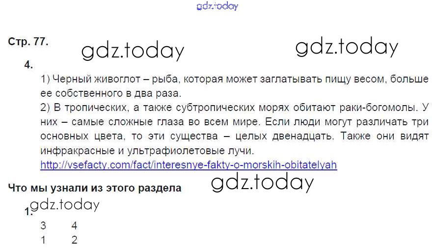 На страницах сайта gdz.today вы найдете учебный и вспомогательный материал, направленный на улучшения знаний школьной программы. ГДЗ - онлайн мир знаний Страницы (решение) 77 Рабочей тетради по Естествознанию для 5 класса Плешаков, Сонин Дрофа Вертикаль 2015