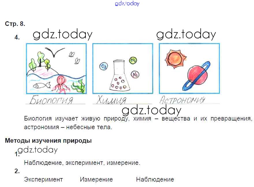 На страницах сайта gdz.today вы найдете учебный и вспомогательный материал, направленный на улучшения знаний школьной программы. ГДЗ - онлайн мир знаний Страницы (решение) 8 Рабочей тетради по Естествознанию для 5 класса Плешаков, Сонин Дрофа Вертикаль 2015