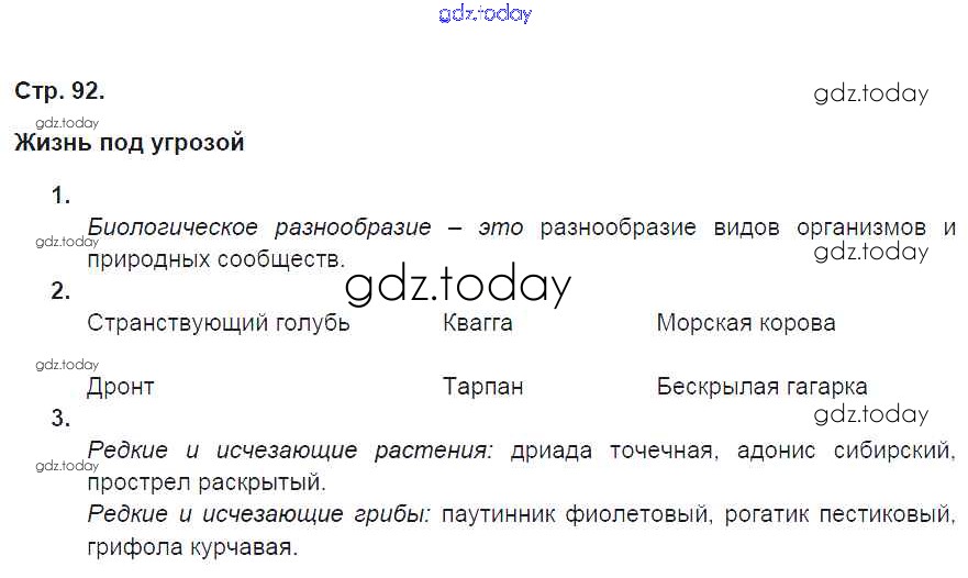 Ответы к Страницы (решение) 92 Рабочей тетради по Естествознанию для 5 класса Плешаков, Сонин Дрофа Вертикаль 2015