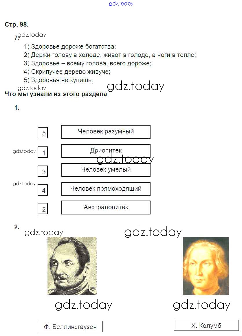 На страницах сайта gdz.today вы найдете учебный и вспомогательный материал, направленный на улучшения знаний школьной программы. ГДЗ - онлайн мир знаний Страницы (решение) 98 Рабочей тетради по Естествознанию для 5 класса Плешаков, Сонин Дрофа Вертикаль 2015