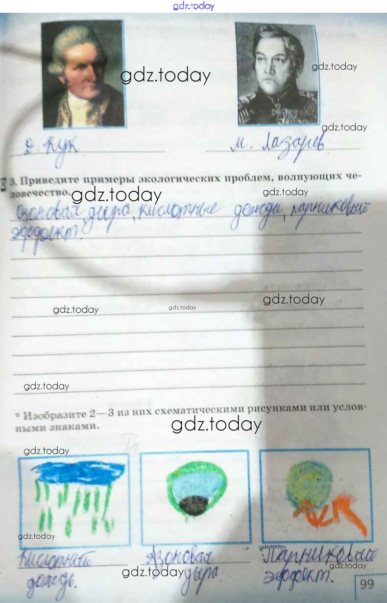 На страницах сайта gdz.today вы найдете учебный и вспомогательный материал, направленный на улучшения знаний школьной программы. ГДЗ - онлайн мир знаний Страницы (решение) 99 Рабочей тетради по Естествознанию для 5 класса Плешаков, Сонин Дрофа Вертикаль 2015