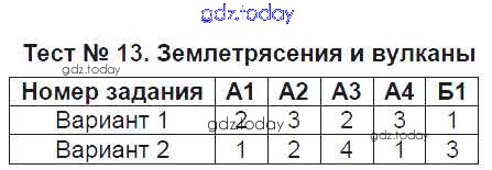 Ответы к Решение к тестам Тест №13. Землетрясения и вулканы Тестам по Естествознанию для 5 класса Воронина Экзамен УМК 2015
