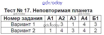 Ответы к Решение к тестам Тест №17. Неповторимая планета Тестам по Естествознанию для 5 класса Воронина Экзамен УМК 2015