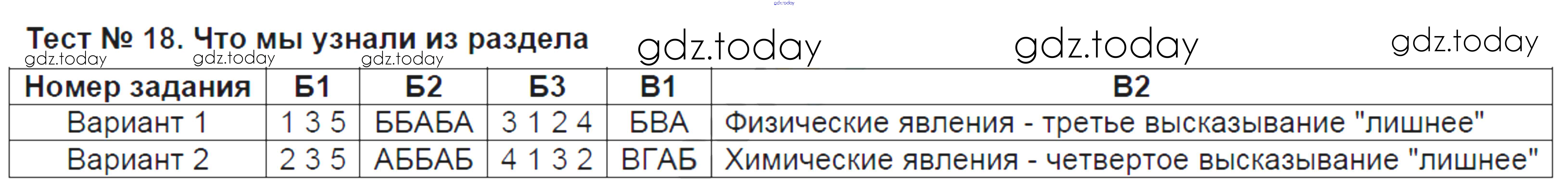 На страницах сайта gdz.today вы найдете учебный и вспомогательный материал, направленный на улучшения знаний школьной программы. ГДЗ - онлайн мир знаний Решение к тестам Тест №18. Что мы узнали из раздела Тестам по Естествознанию для 5 класса Воронина Экзамен УМК 2015