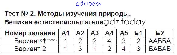 Ответы к Решение к тестам Тест №2. Методы изучения природы Тестам по Естествознанию для 5 класса Воронина Экзамен УМК 2015